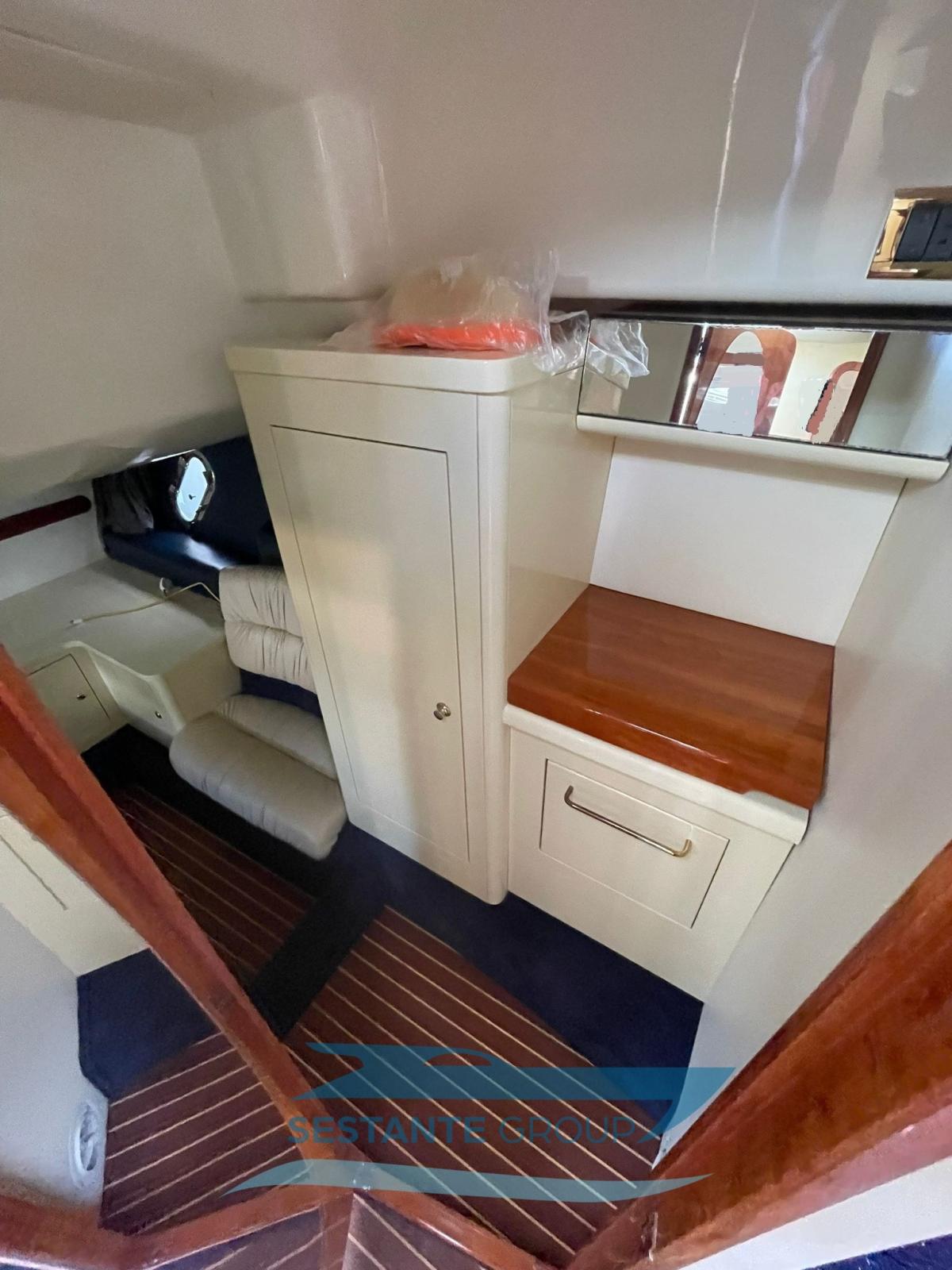 Acqua Calda, BBQ/ Grill, Boiler, Indicatore del serbatoio del carburante, Indicatore del Serbatoio dell’Acqua, Indicatore della temperatura del motore, Pavimento interno in legno, Prese interne 12v, Prese interne 220v, WC marino elettrico.