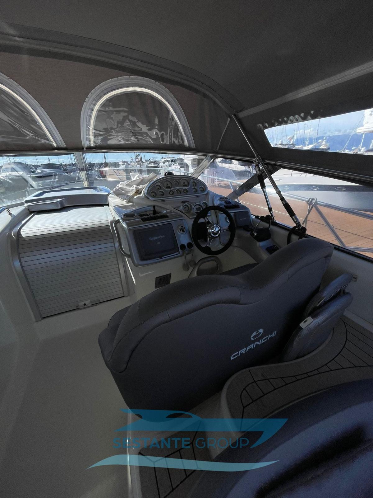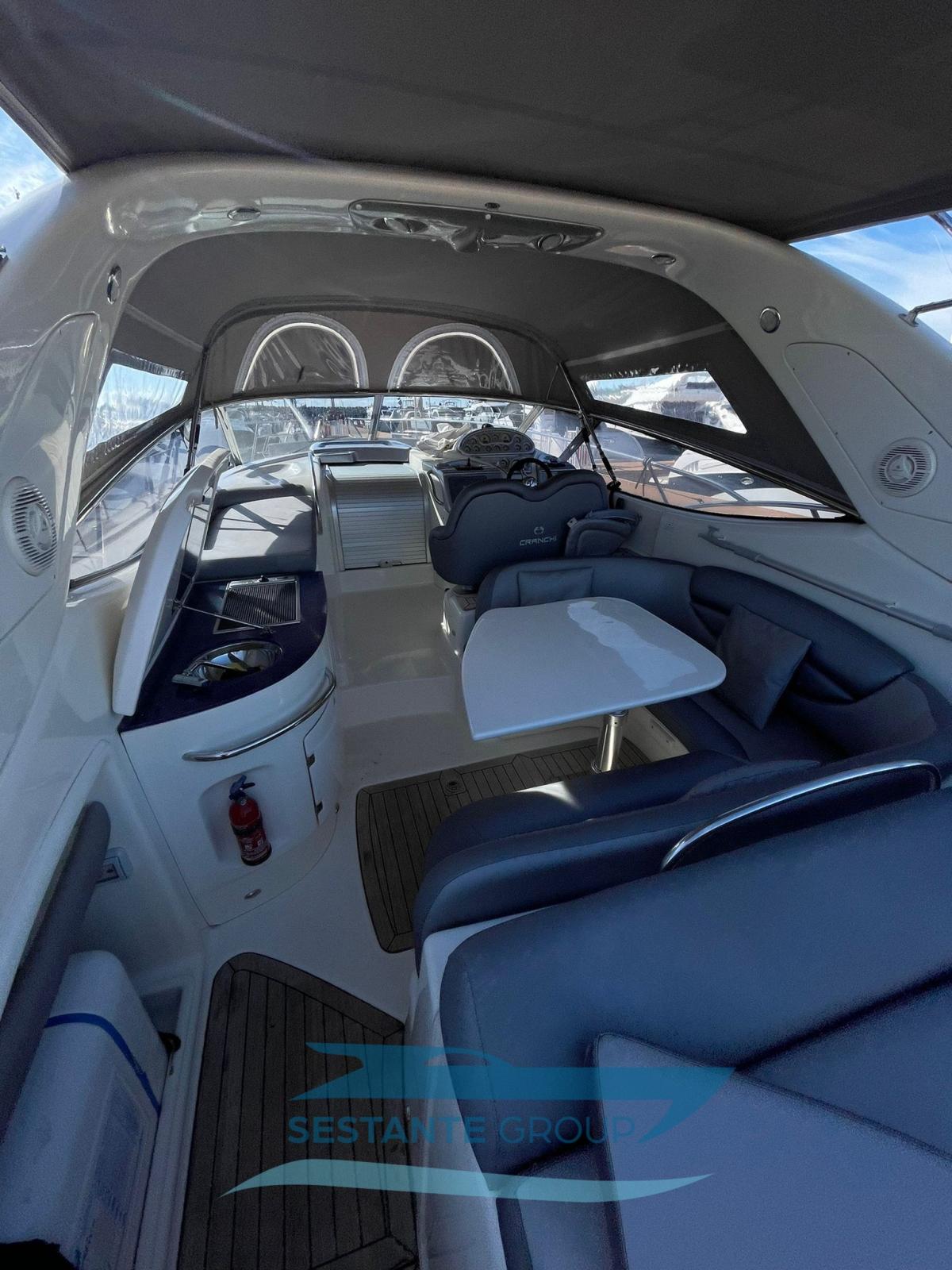 The Cranchi 41 Endurance is the ideal compact boat for fast cruising in company. There are numerous characteristics that make it particularly appreciable. First of all, the space on board both on deck and below is very well exploited: the sunbathing areas are large both at the bow and at the stern and the cockpit is well equipped and houses a complete outdoor kitchen, a semi-circular sofa and a small table, for living fully the area of the boat in most direct contact with the sea. Inside, however, the open space solution which includes a dinette and double cabin provides great airiness. A second cabin accommodates two more beds. This example is equipped with air conditioning, bow thruster, teak-covered stern platform and hydraulic gangway to improve comfort and practicality in all circumstances. An