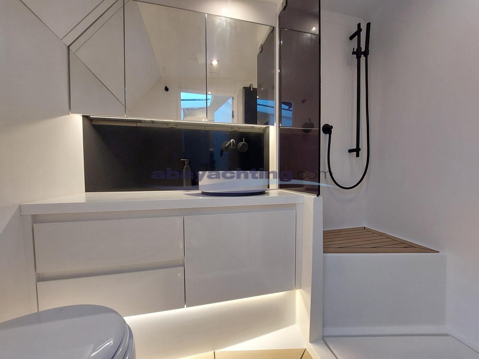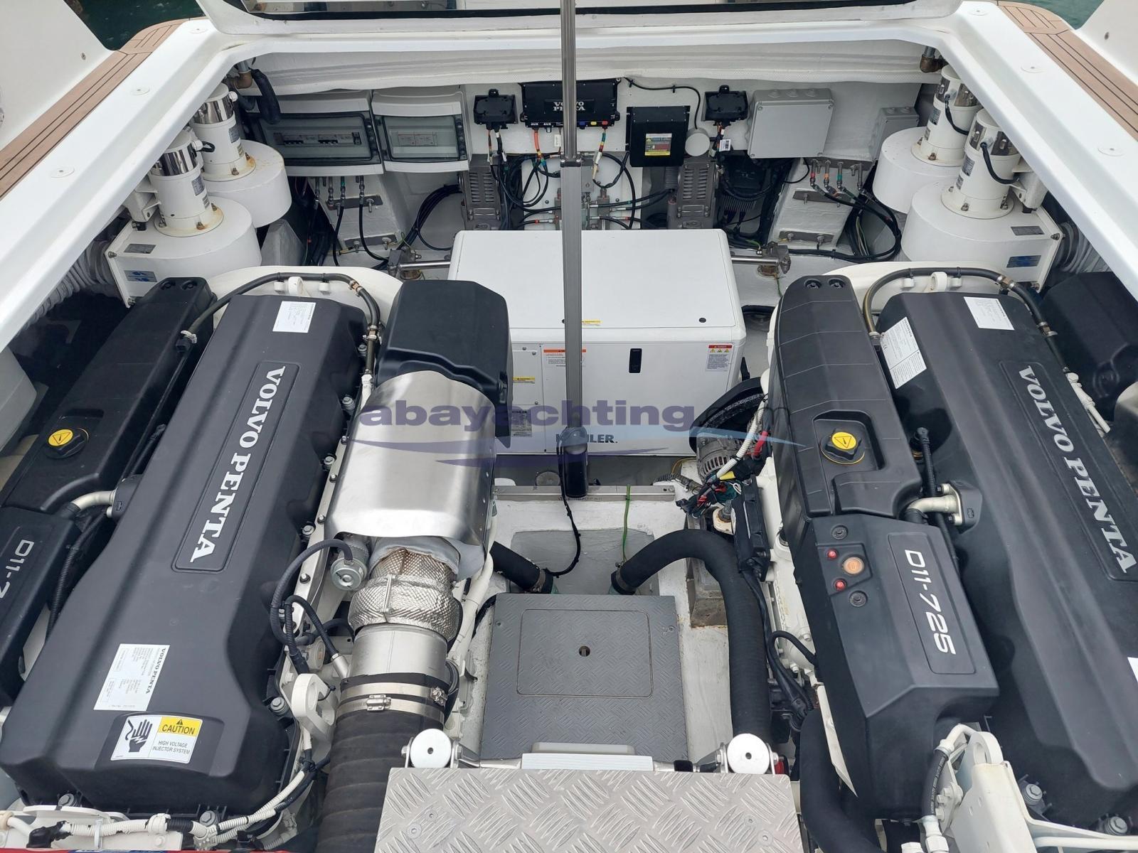 Van Dutch 48 con motorizzazione maggiorata Volvo Penta D11 da 725hp in linea d'asse con joystick di manovra. Full optional: generatore da 8.5 kw, elica di poppa + elica di prua Side Power, piattaforma di poppa idraulica con sistema sali-scendi, climatizzatore reversibile, bimini pieghevole e richiudibile elettricamente, doppio frigorifero esterno + ice-maker, coperta in teak sintetico Flexiteek, elettronica Garmin con 2 schermi touch da 16".