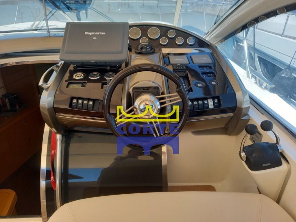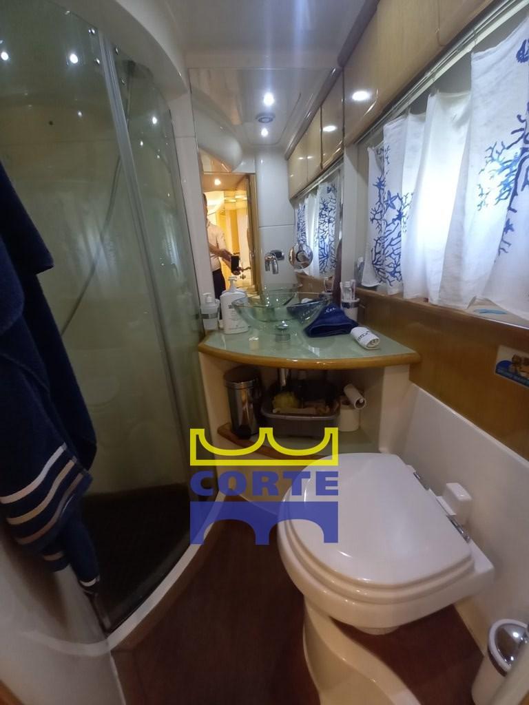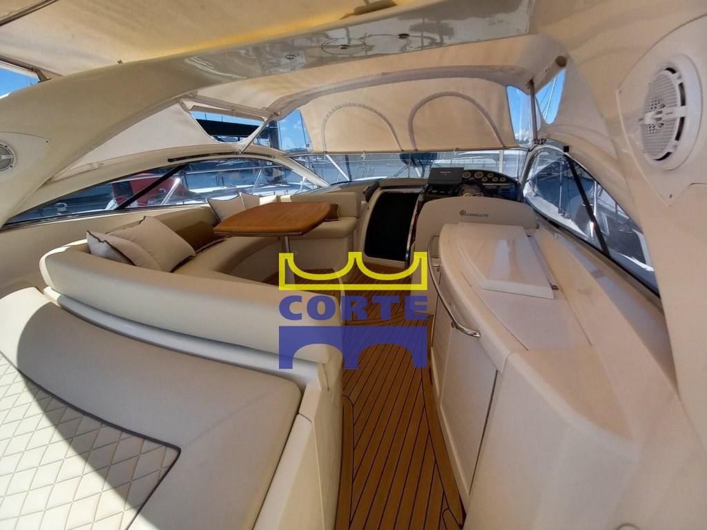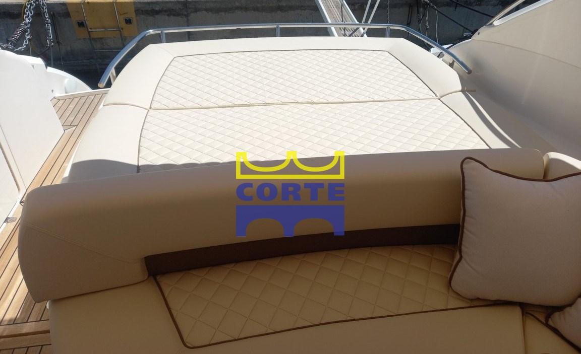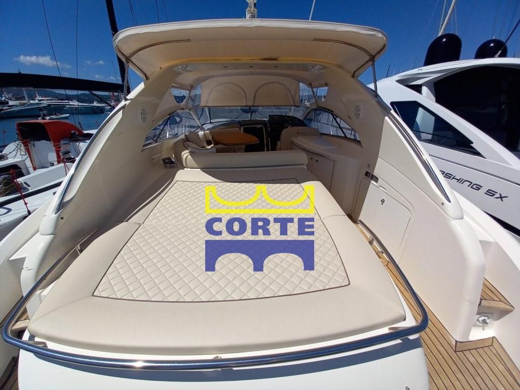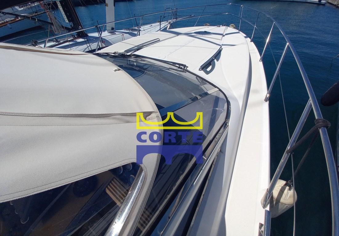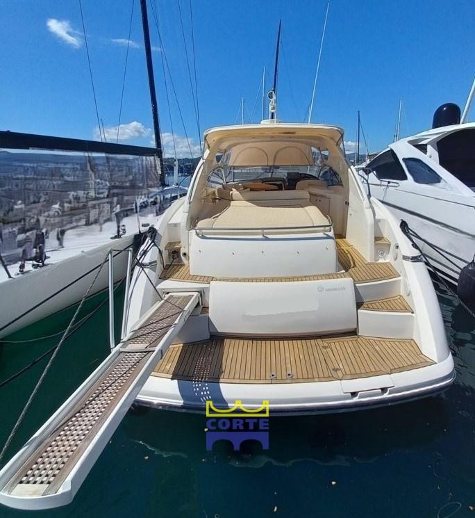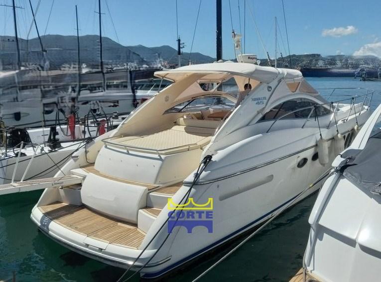 Scafo bianco, garage tender, 2 cabine matrimoniali, prendisole poppa e prua.