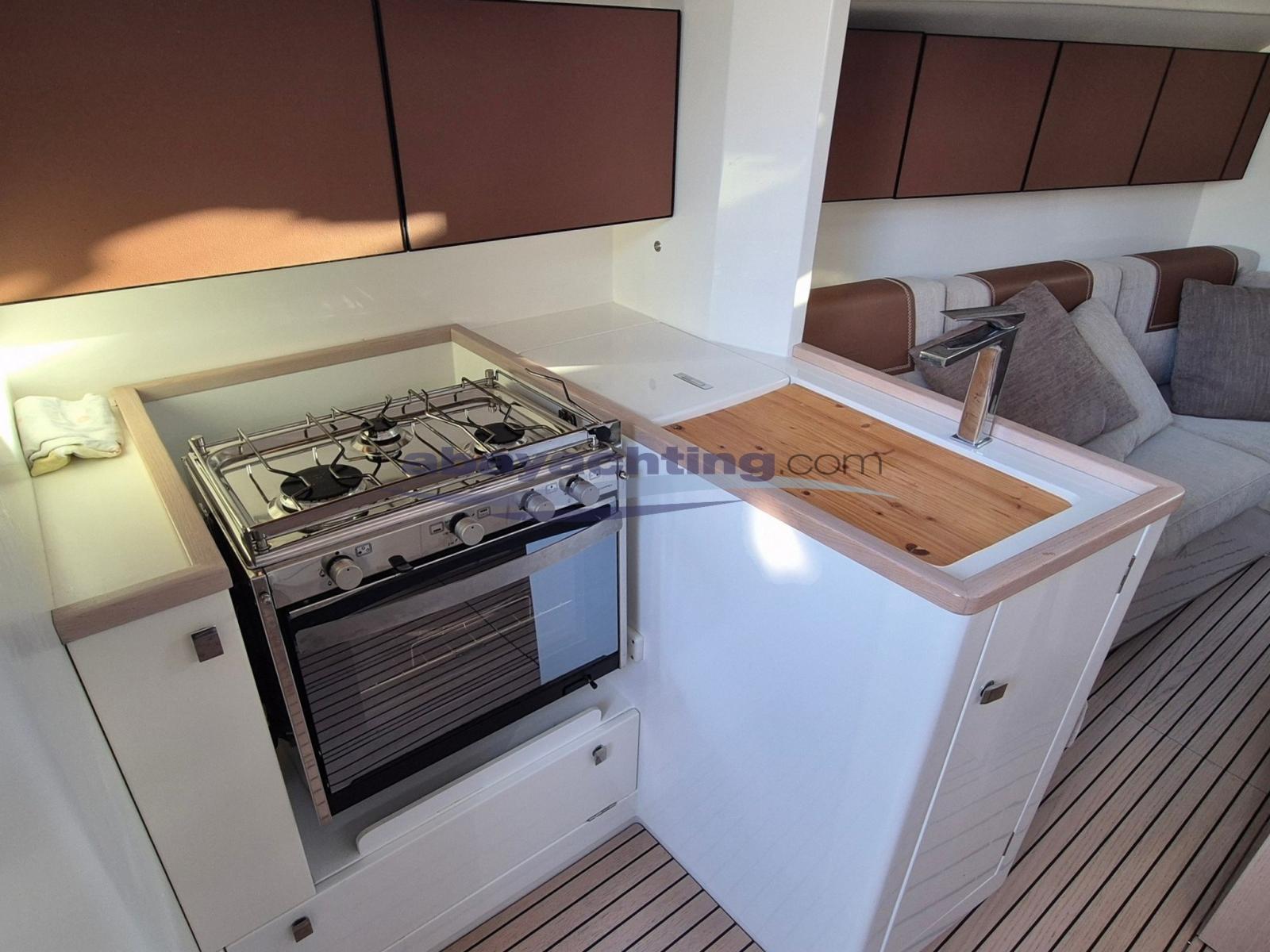 Accessoriata con doppio gioco di vele randa full-batten e fiocco in Norlam + randa e fiocco Quantum-Sail (ex demo), gennaker della North Sails, 6 winch, sprayhood, oblò doppi nelle cabine di poppa (optional), tavolo in pozzetto amovibile, sartiame in tondino ed elettronica della B&G completa di pilota automatico e AIS.