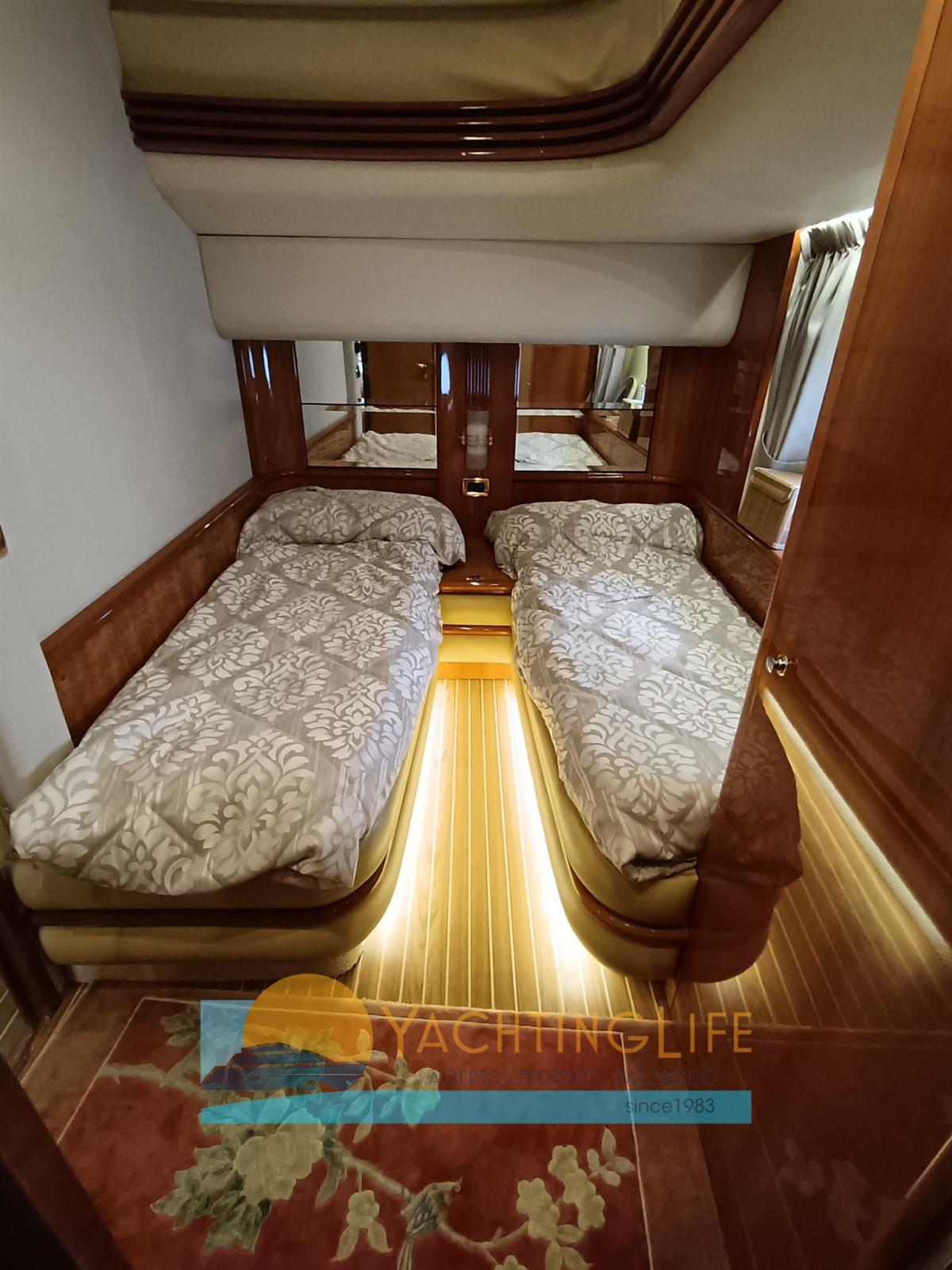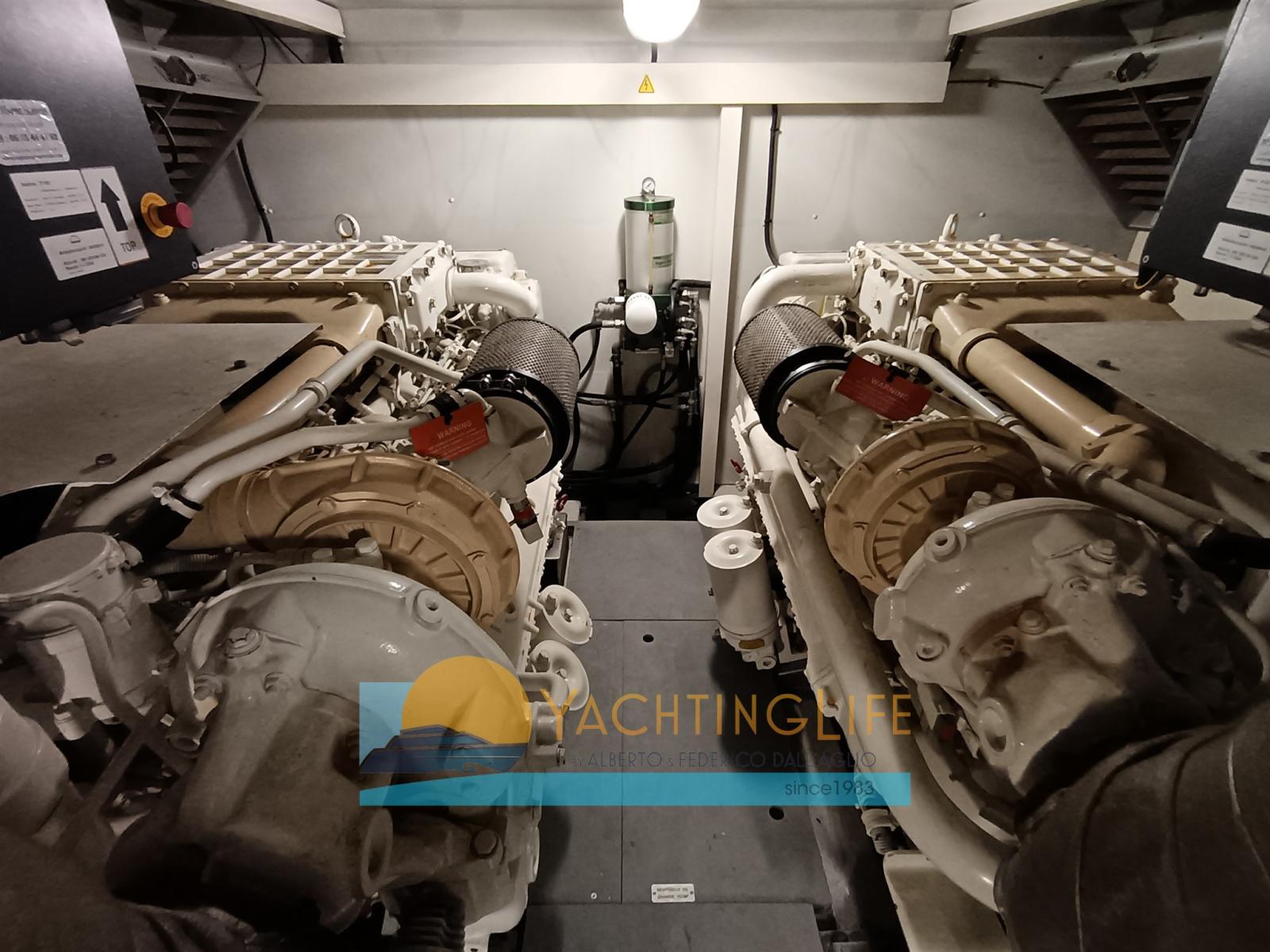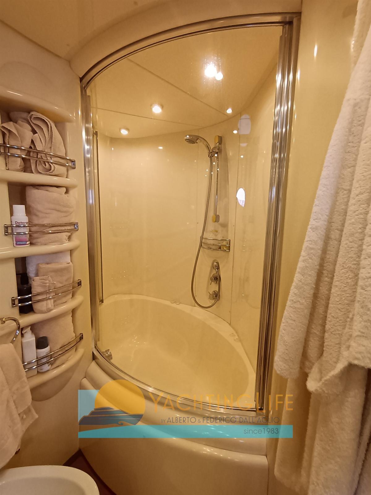 Allarme motore, Allarme sentina, Autoclave, Camminamenti laterali in teak, 2 Caricabatterie, Doccia esterna, Doppia timoneria, Faro orientabile, Flap idraulici, Gruette per tender su fly, Impianto antincendio, Indicatori Flaps, Luci di cortesia, Passerella (idraulica), Piattaforma, Pompa di sentina automatica, Porta ingresso, Porta laterale, Pozzetto Teak, Presa 220V banchina, Salpa Ancore Elettrico, Scaletta da bagno, Selle per Tender, Tavolo pozzetto, Tender (e motore), Tromba, 2 Winch tonneggio di poppa.