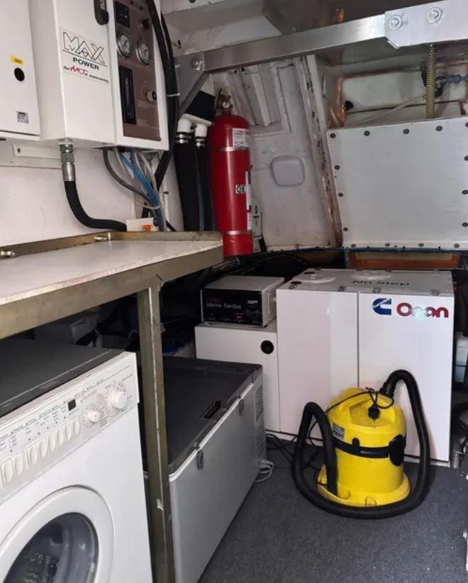 Acqua Calda, Boiler, Clima reversibile, Impianto acque nere, Indicatore del serbatoio del carburante, Prese interne 12v, Prese interne 220v, 4 WC marino elettrico.