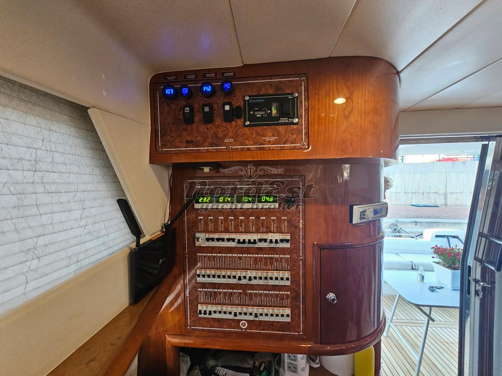 Angolo di barra - Autopilota - Ecoscandaglio - GPS/Plotter - Radar - VHF - Manette elettroniche - Telecamere - Impianto TV - TV - Impianto stereo