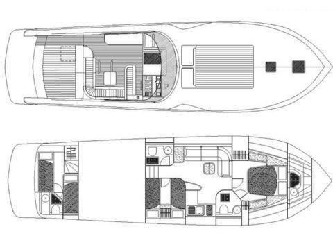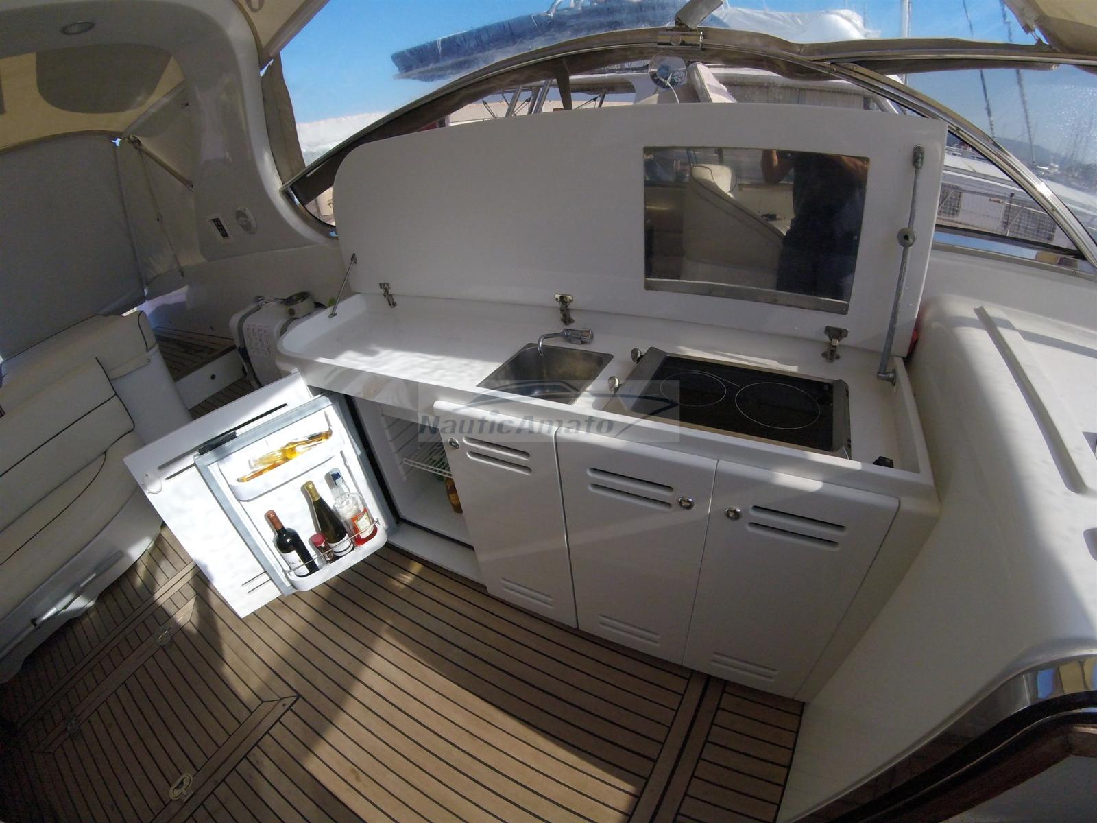 Allarme motore, Allarme sentina, Autoclave, Cavo corrente di banchina, Doccia esterna, Faro orientabile, Flap idraulici, Impianto antincendio, Indicatori Flaps, Lavandino nel Pozzetto, Luci di cortesia, Luci subacquee, Passerella (Idraulica), Pozzetto Teak, Presa 220V banchina, Salpa Ancore Elettrico, Scaletta da bagno, Tavolo pozzetto, Tavolo Salone Abbattibile.