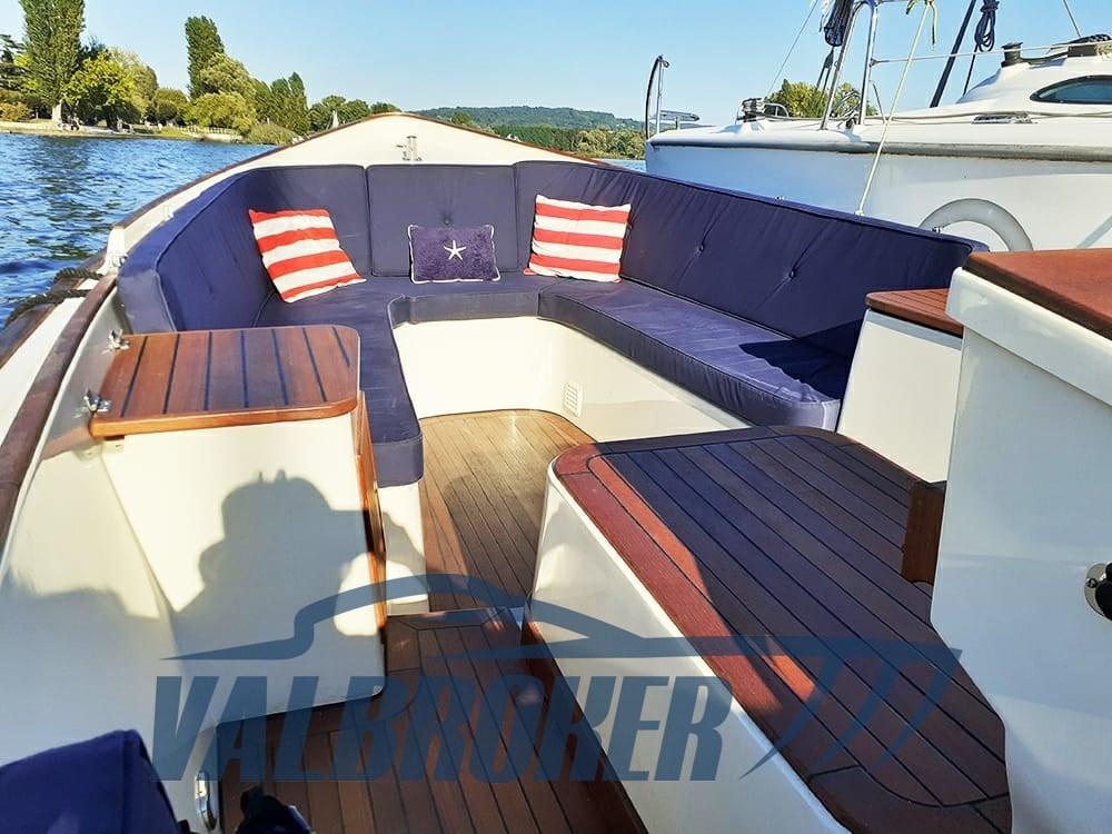 Scafo in vetroresina con rifiniture in teak massello, teak sempre oliato. Rimessata d'inverno.