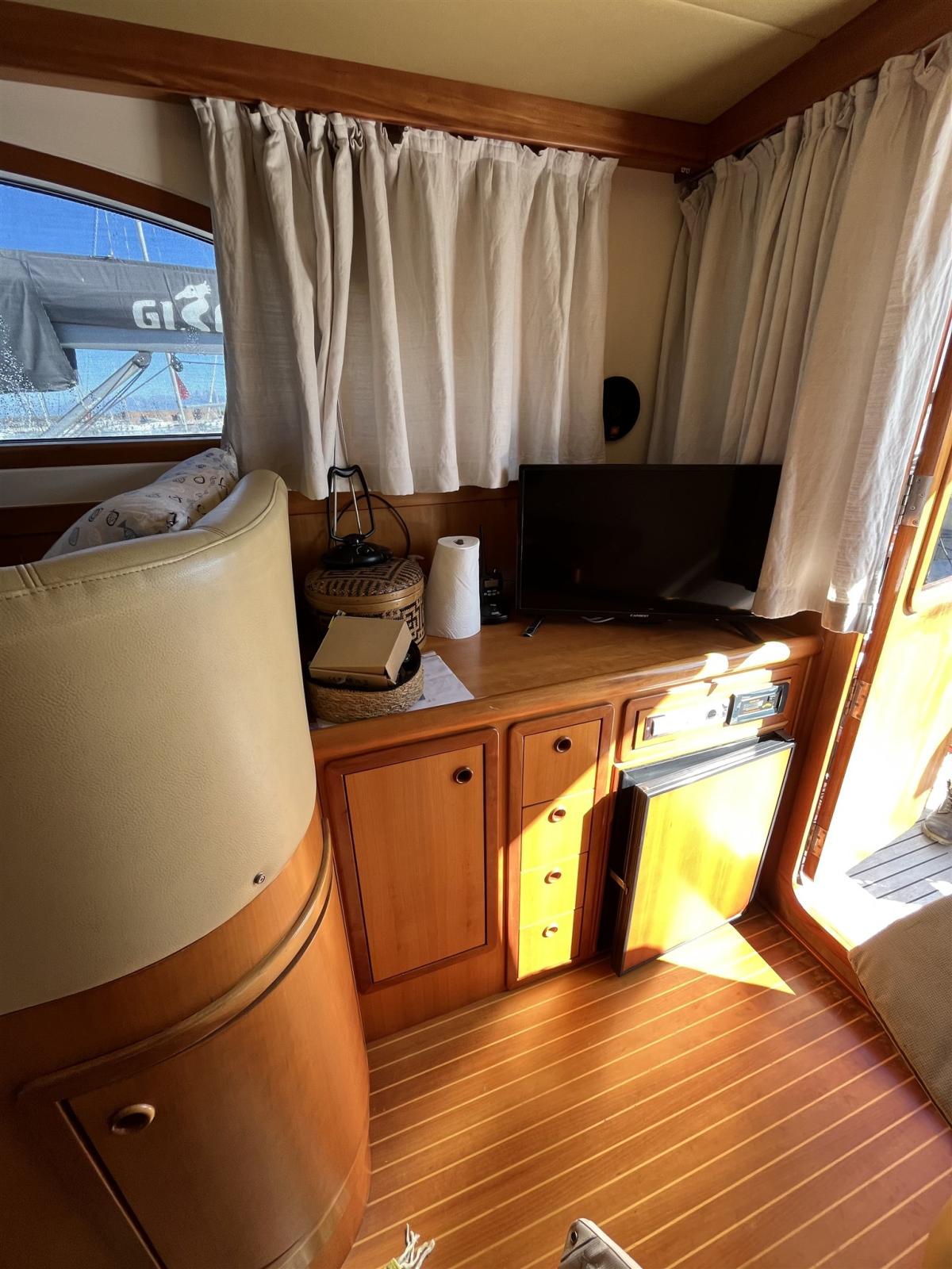 2025: tenuta assi idrauliche, boccole, equilibratura eliche, chiusura totale pozzetto reti ombreggianti, cielini salone, insonorizzazione vano motore, raiser e resinatura scarichi, rigommatura teak, verniciatura mobile pozzetto e tavolo fly e tutte le parti in legno esterne.