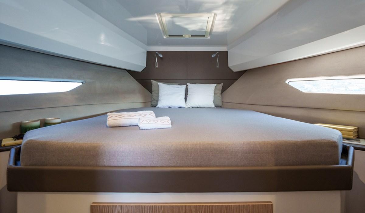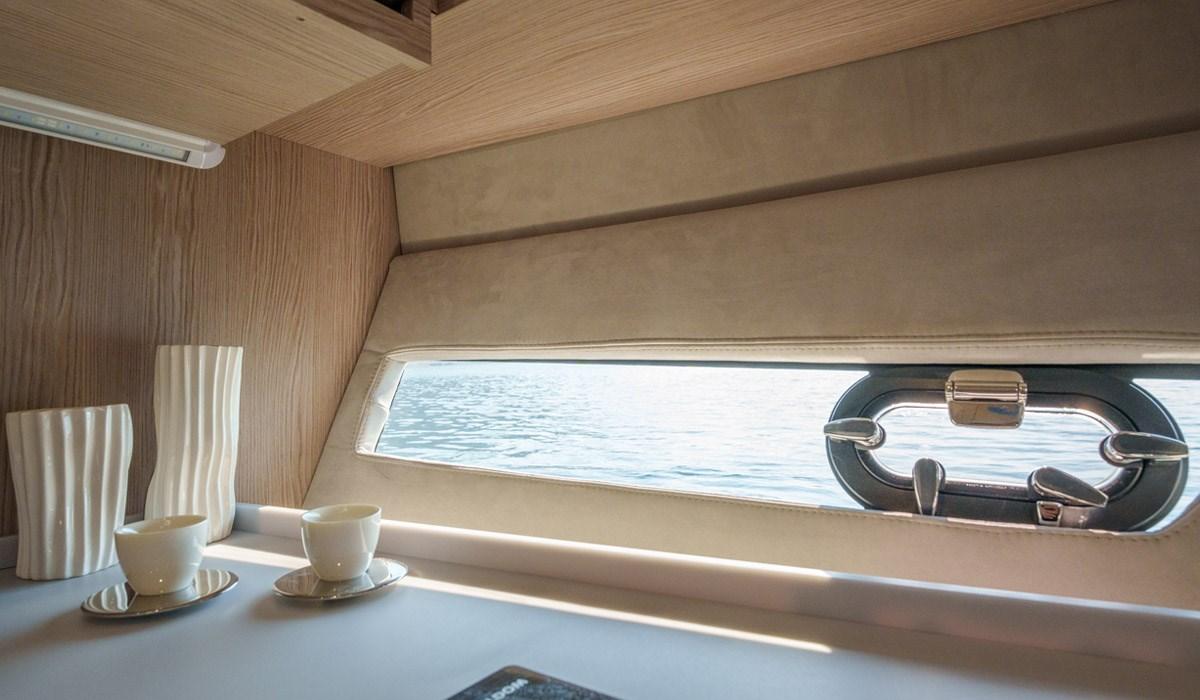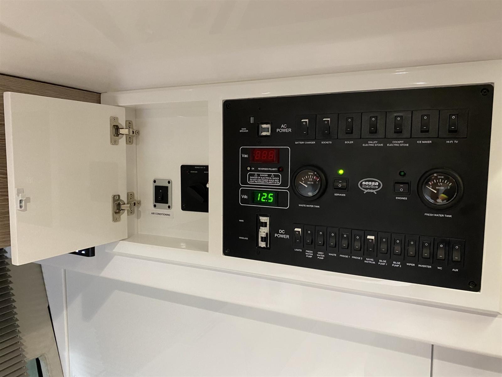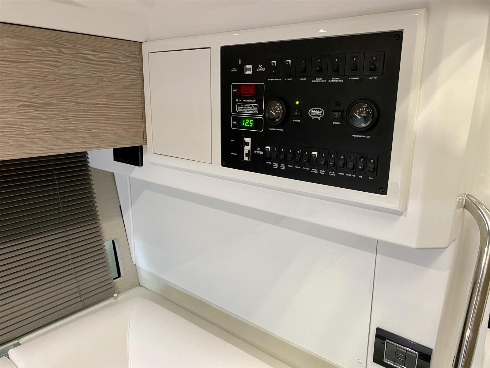 Allarme motore, Allarme sentina, Autoclave, Doccia esterna, Flap idraulici, Hard top, Impianto antincendio, Indicatori Flaps, Lavandino nel Pozzetto, Luci di cortesia, Luci subacquee, Piattaforma, Pompa di sentina automatica, Pompa di sentina manuale, Ponte in teak, Pozzetto Teak, Presa 220V banchina, Salpa Ancore Elettrico, Scaletta da bagno, Tavolo pozzetto, Tromba.