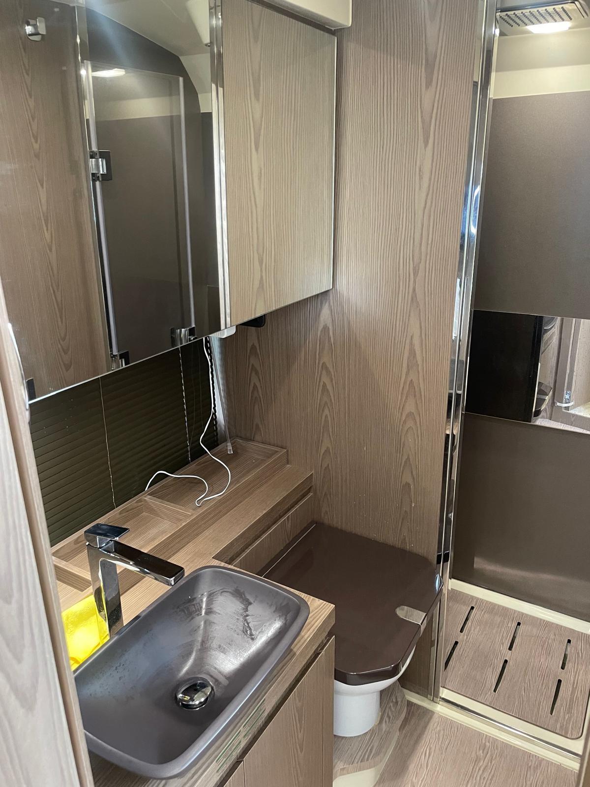 Acqua Calda, Boiler, Clima reversibile, Dimmer per Luci (luci Rgb esterne), Indicatore del serbatoio del carburante, Indicatore del Serbatoio dell’Acqua, Indicatore del Serbatoio delle Acque Reflue, Pavimento interno in legno, Prese interne 12v, Prese interne 220v, Serbatoio Acque Nere, WC marino elettrico.