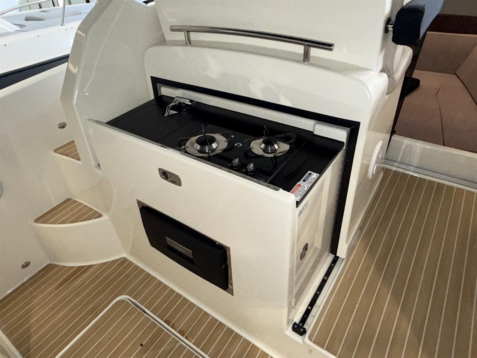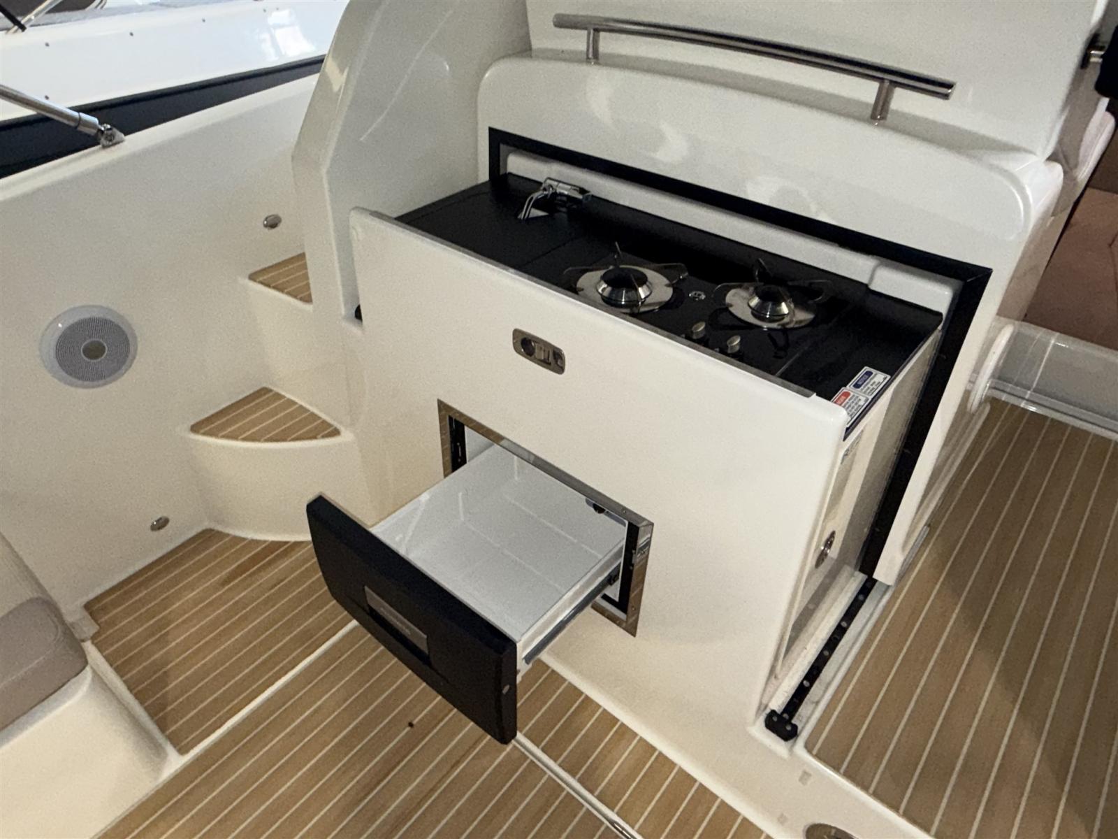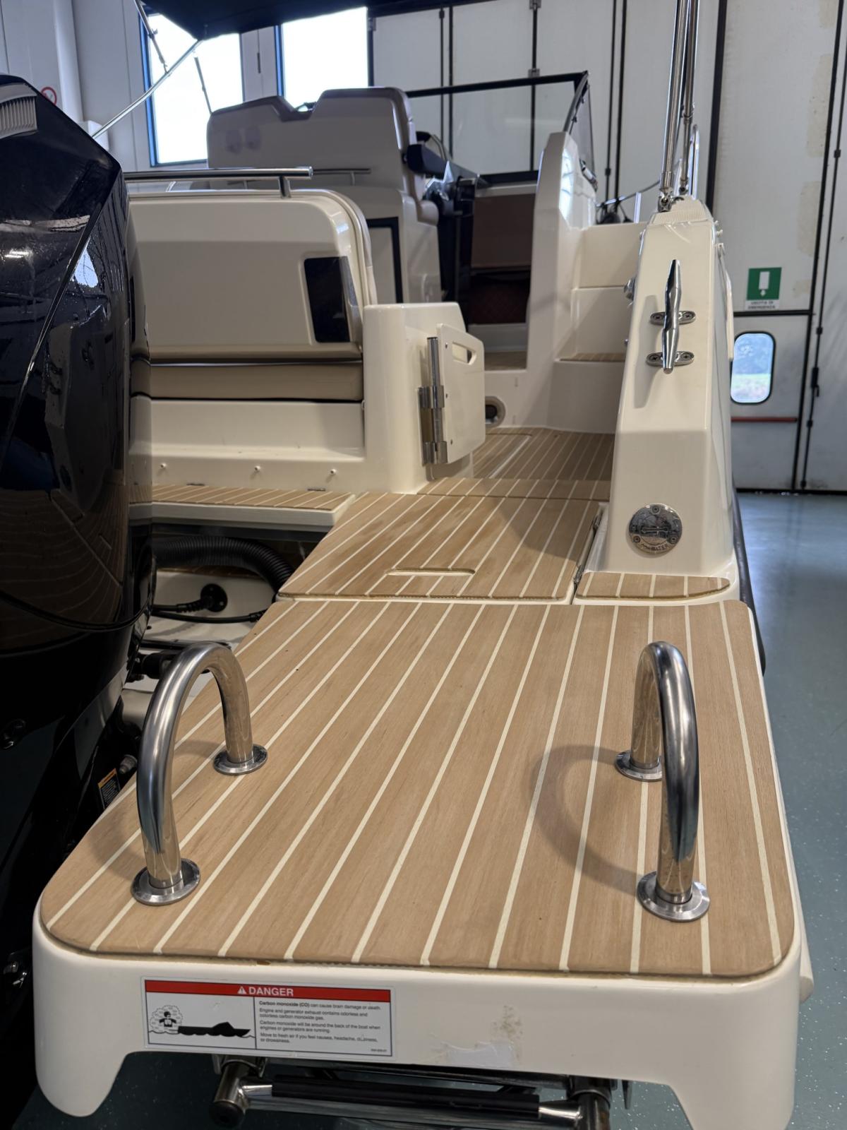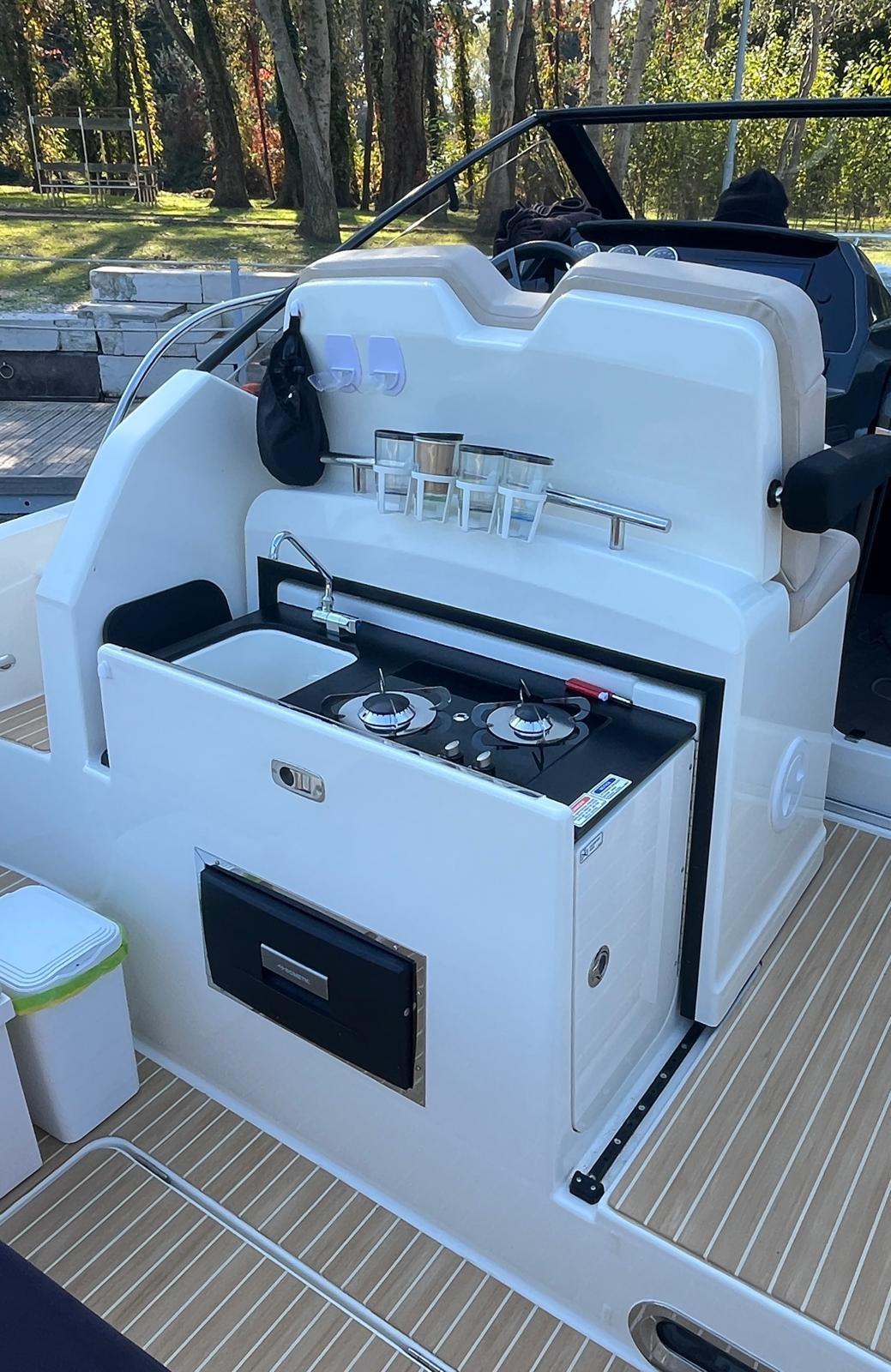 Allarme motore, Autoclave, Cavo corrente di banchina, Doccia esterna, Flap elettrici, Indicatori Flaps, Lavandino nel Pozzetto, Luci di cortesia, Parabordi, Pozzetto Teak (Flexiteek), Presa 220V banchina, Presa acqua banchina, Salpa Ancore Elettrico, Scaletta da bagno, Tavolo pozzetto, Tromba.