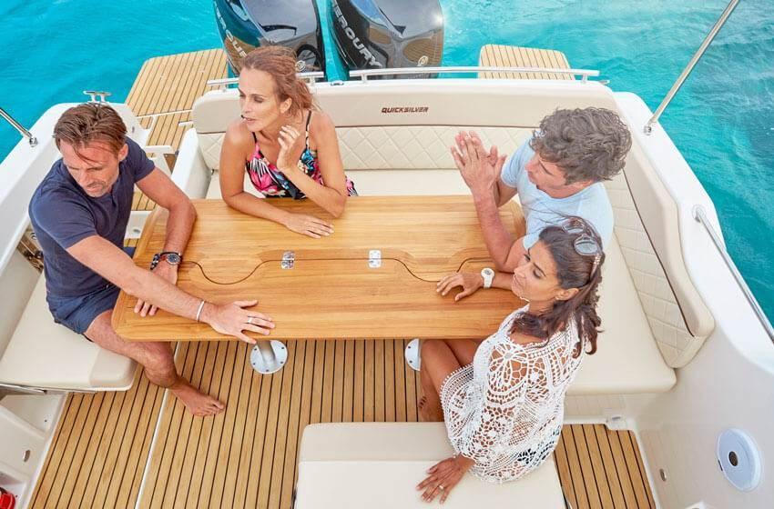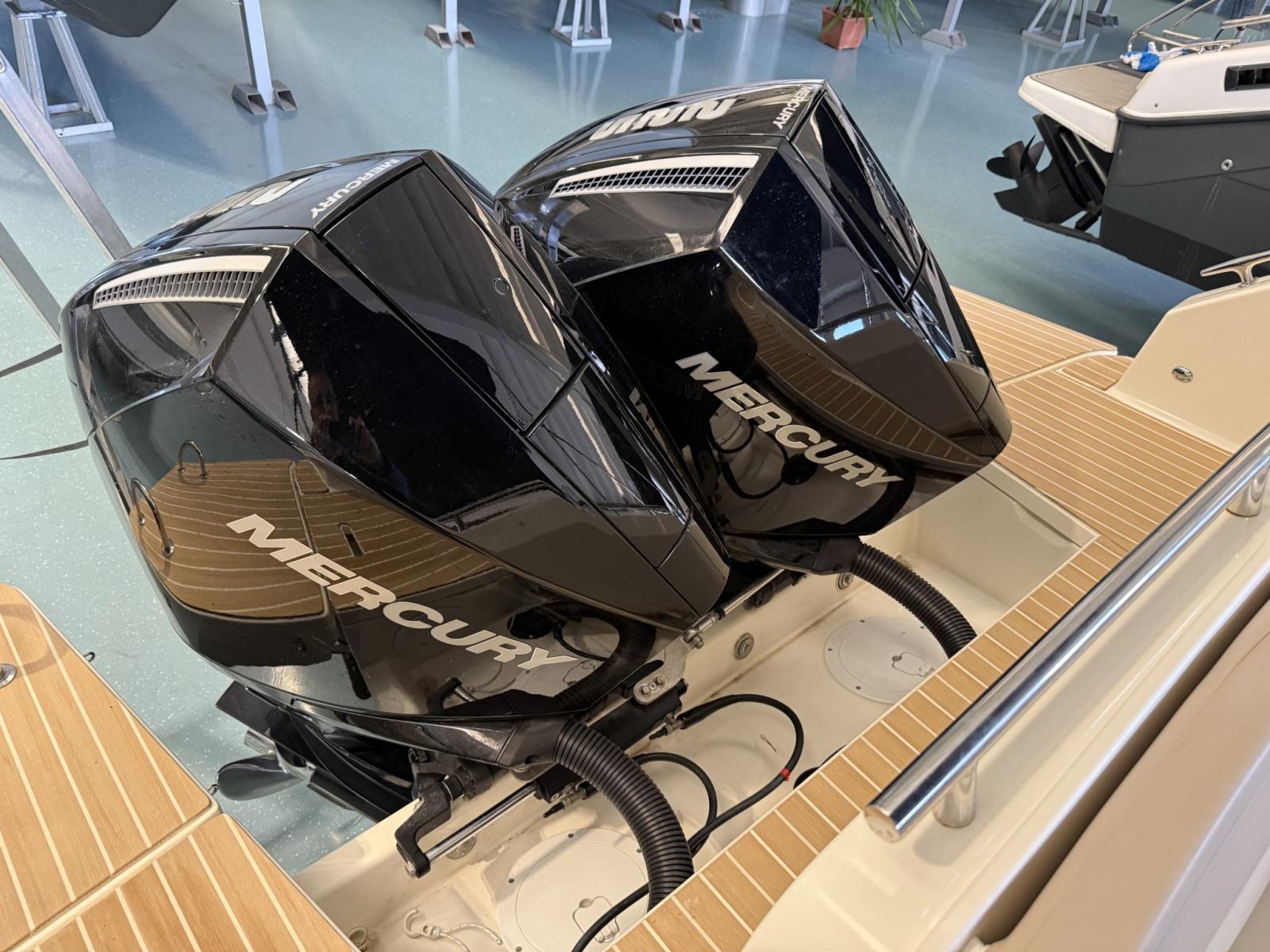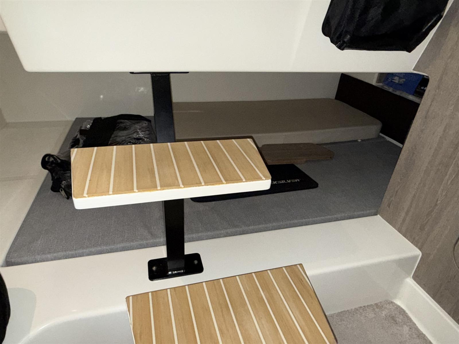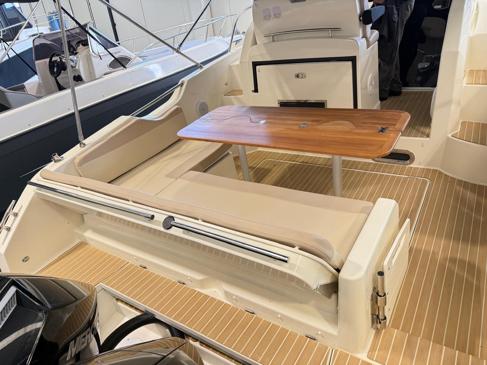 Allarme motore, Autoclave, Cavo corrente di banchina, Doccia esterna, Flap elettrici, Indicatori Flaps, Lavandino nel Pozzetto, Luci di cortesia, Parabordi, Pozzetto Teak (Flexiteek), Presa 220V banchina, Presa acqua banchina, Salpa Ancore Elettrico, Scaletta da bagno, Tavolo pozzetto, Tromba.