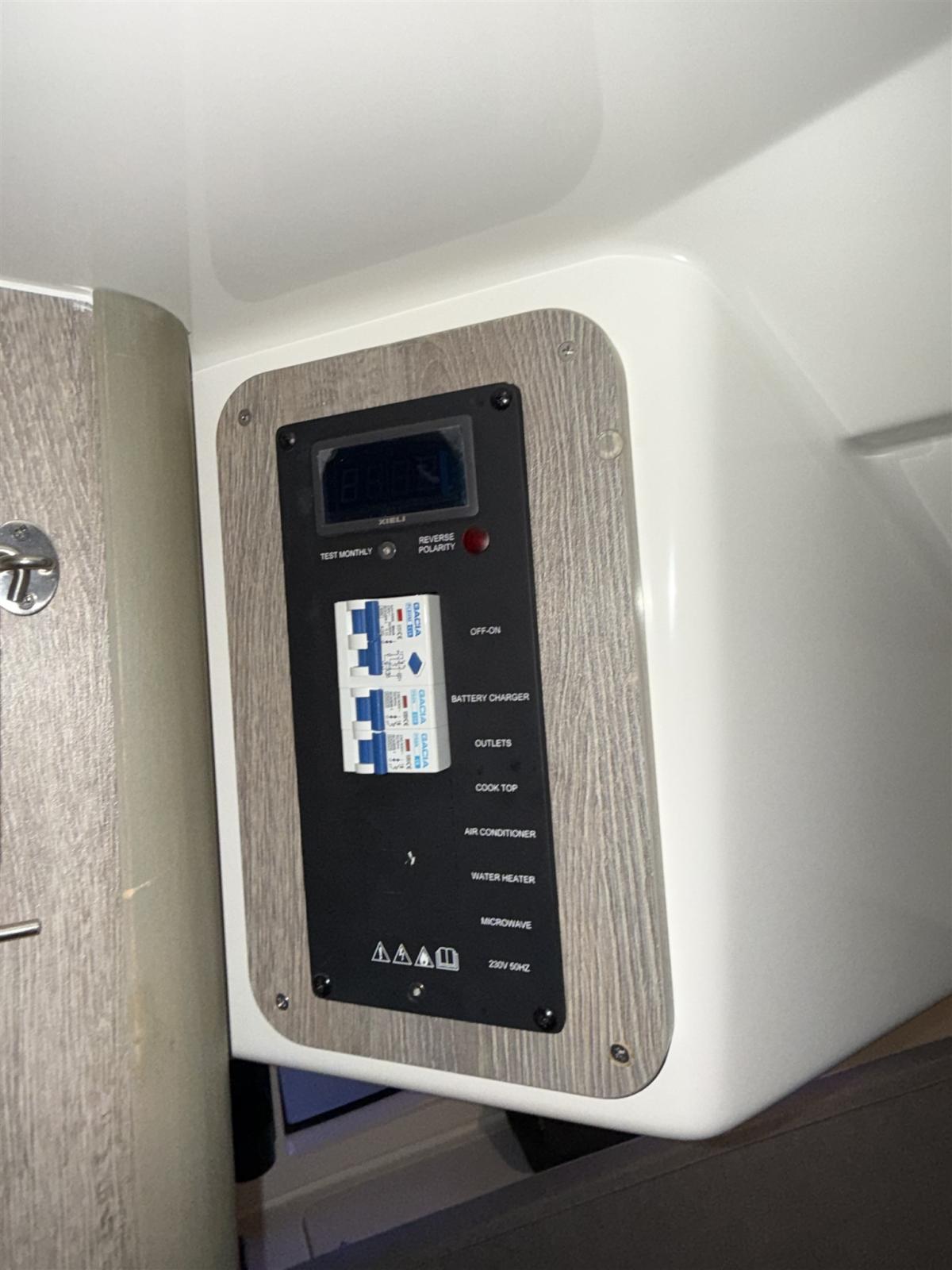 Indicatore del serbatoio del carburante, Indicatore del Serbatoio dell’Acqua, Prese interne 12v, Prese interne 220v, Serbatoio Acque Nere, WC marino elettrico.