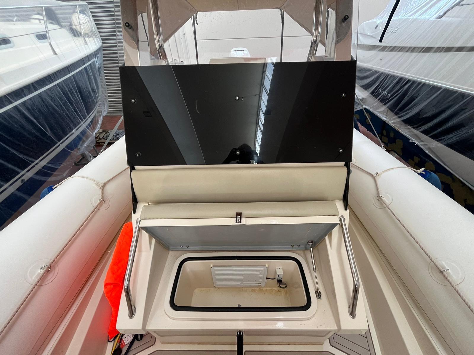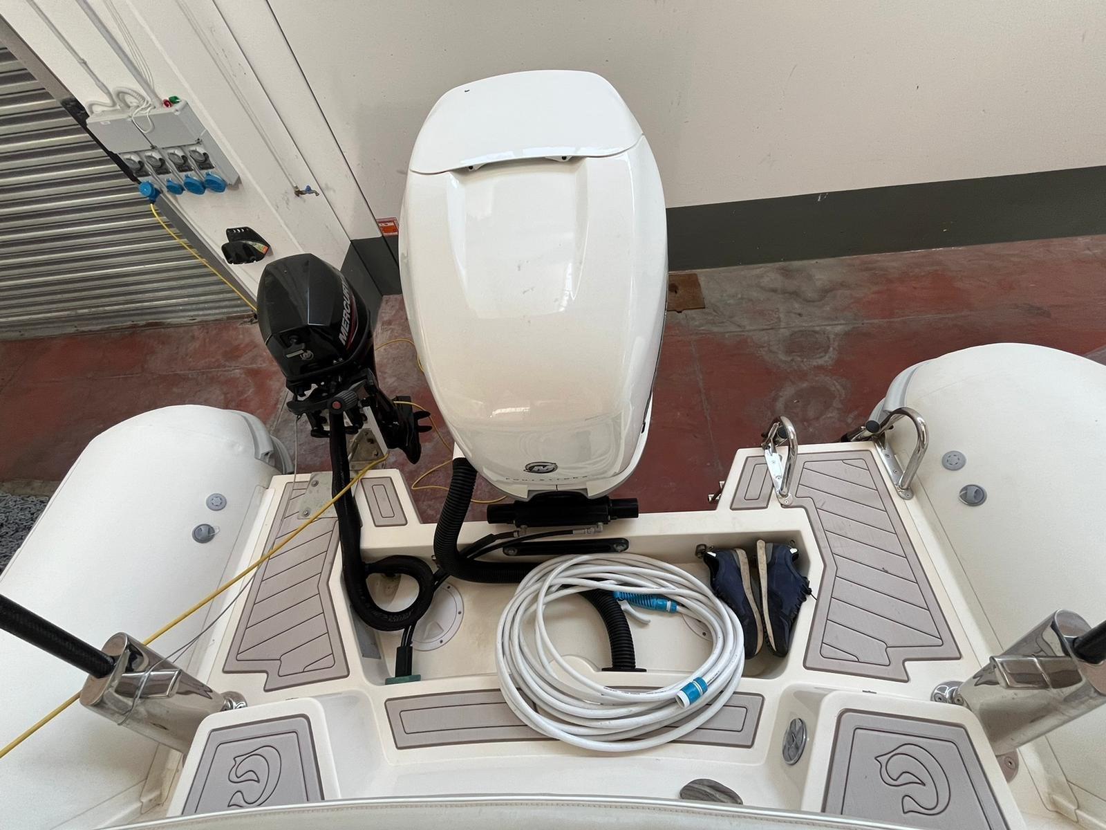 Plexiteak in tutto il gommone, manetta elettronica, motore di scorta Mercury 9,9 kp