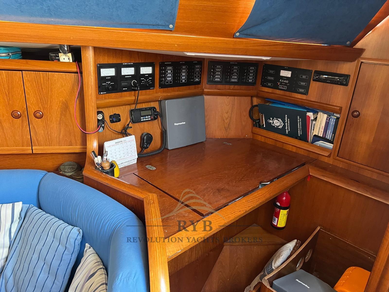 Batterie (2023), Camminamenti laterali in teak, Doppia timoneria, Gruette per motore fuoribordo, Passerella, Ponte in teak, Porta ingresso, Pozzetto Teak, Presa 220V banchina, Salpa Ancore Elettrico (revisionato 2021 + rimando in in pozzetto), Sartiame spiroidale, Tavolo pozzetto, Windex.