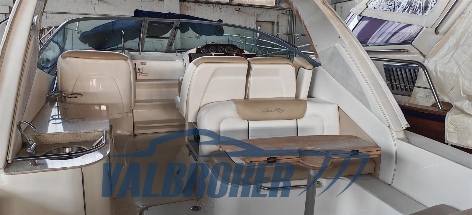Grande qualità costruttiva dell'importante cantiere americano Sea Ray. Scafo solido, robusto e ben strutturato per qualsiasi condizione meteo. Imbarcazione in ottimo stato, ha navigato sempre e solo in acqua dolce sul lago di Garda. Motorizzata 2x325HP V8 Mercruiser 6.2 Bravo III con solo 250 ore di moto!! Model year 2008. Rimessata al coperto tutti gli inverni. Elica di prua, aria condizionata caldo/freddo. Comodo vano apribile con divanetto su plancetta di poppa. Cuscineria bicolor originale Sea Ray in ottimo stato di conservazione.