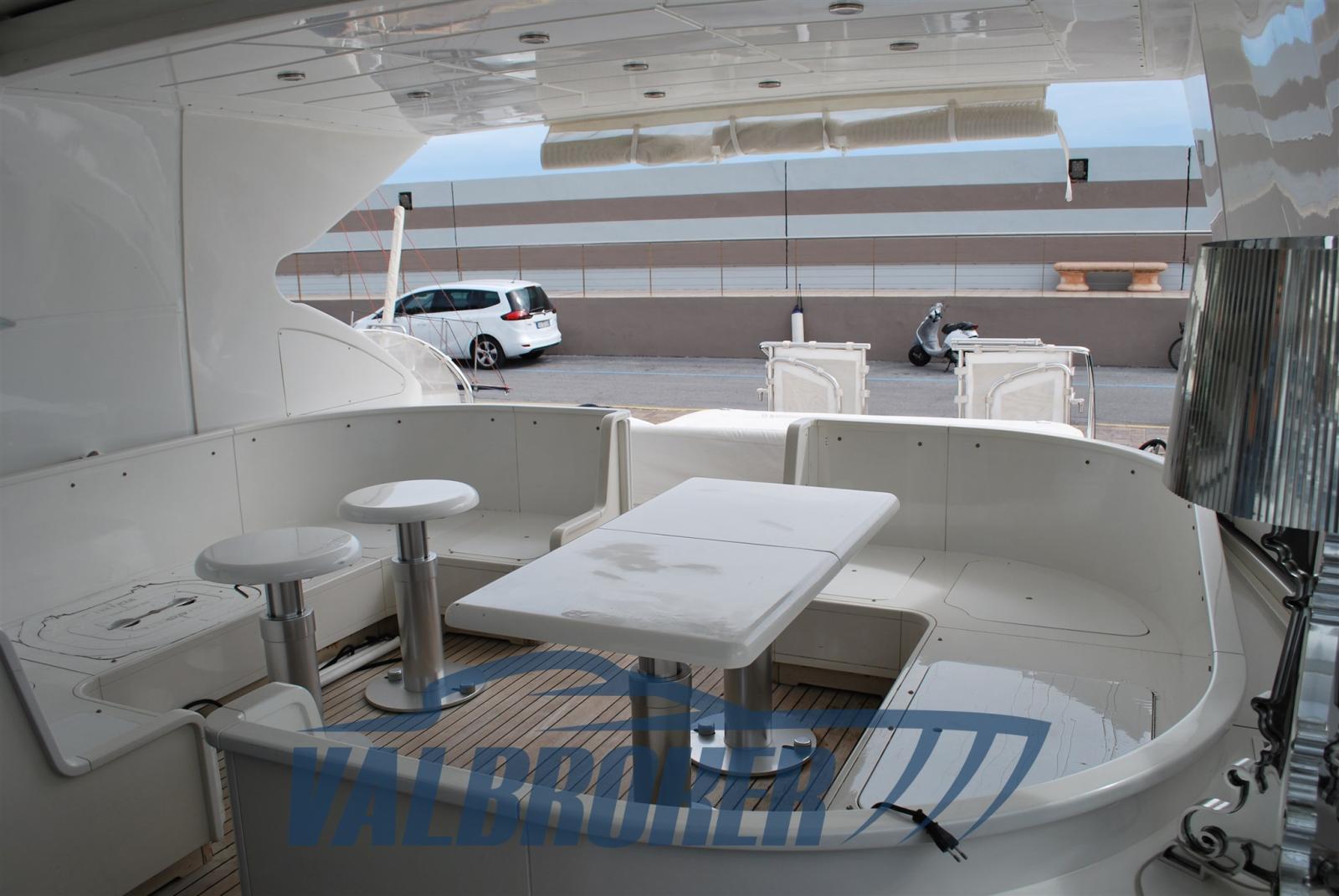 Autoclave, Elica di prua - bow thruster (Vetus), Faro orientabile (Sanshin HR1012), Garage per tender (ampio, portellone idraulico), Hard top (con apertura elettrica soffitto in pelle), Passerella (idraulica, teak), Piattaforma (teak), Pozzetto Teak, Raddrizzatore, Salpa Ancore Elettrico (Quick, comando a distanza), Tavolo pozzetto.