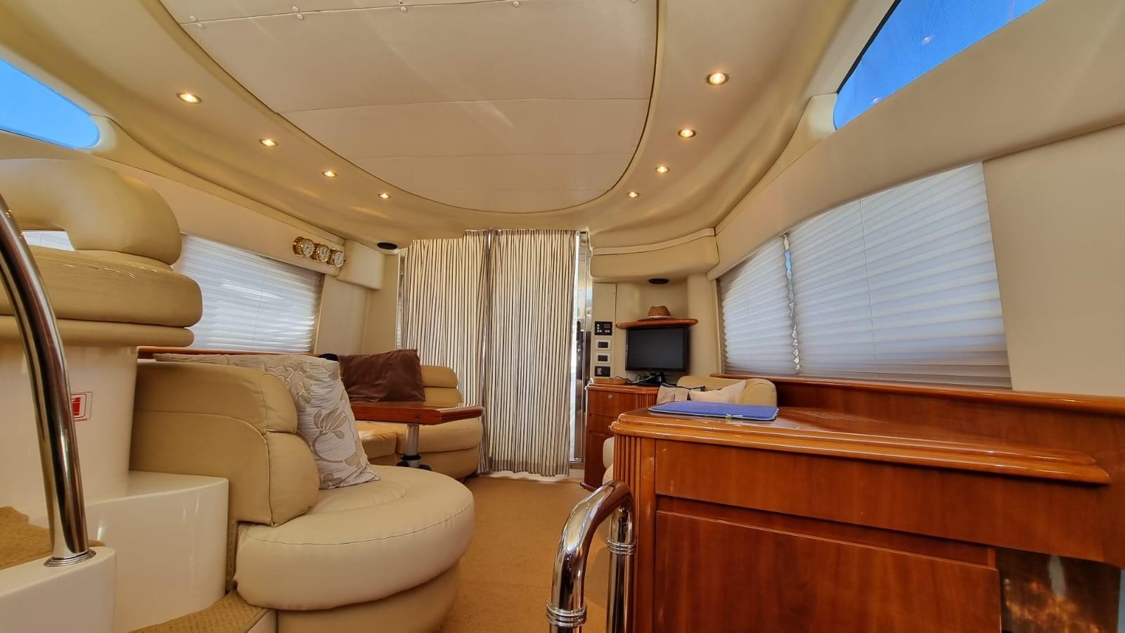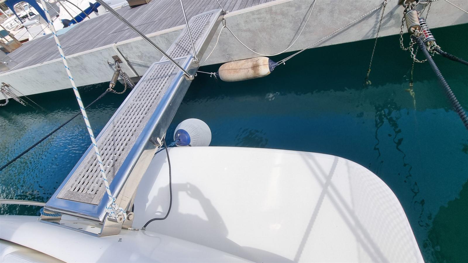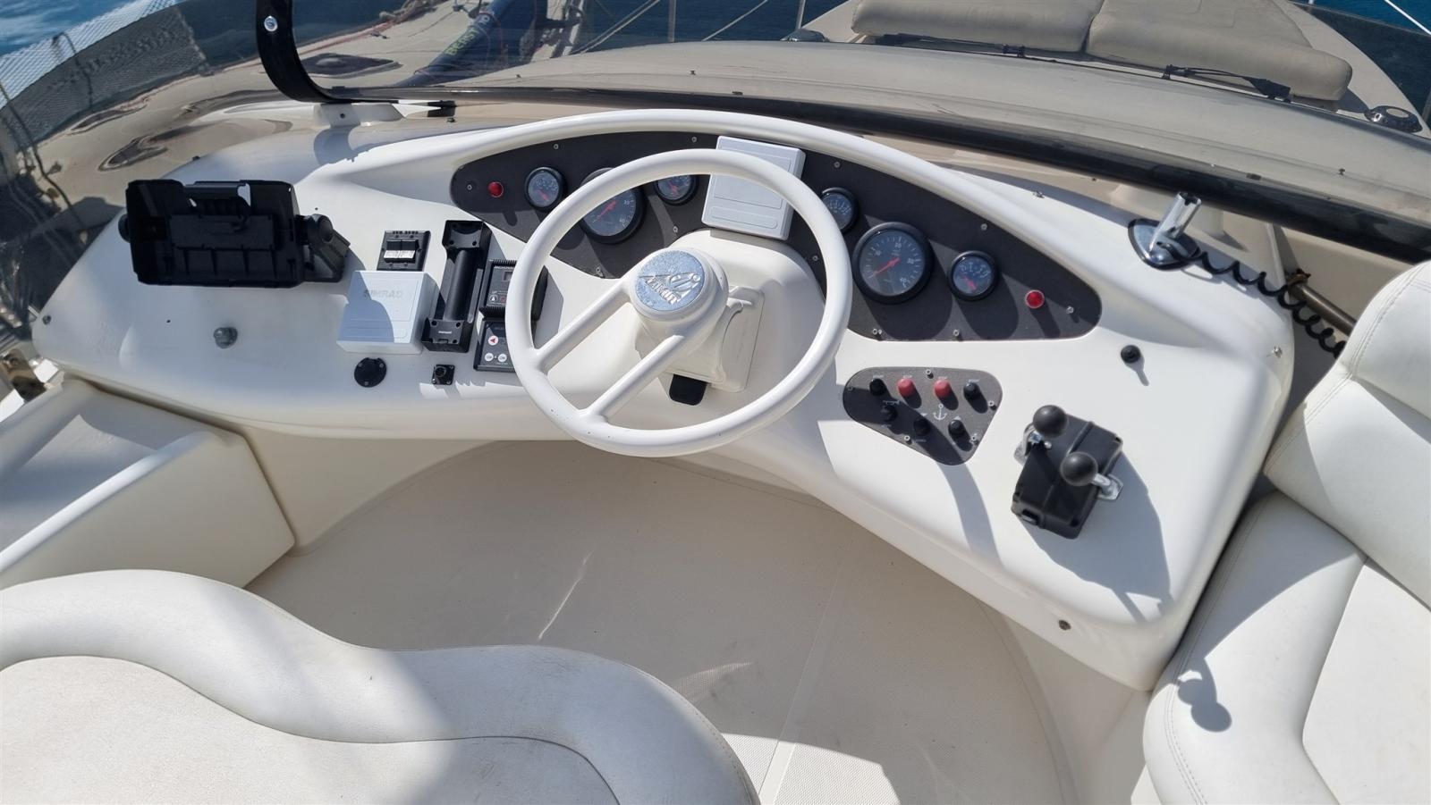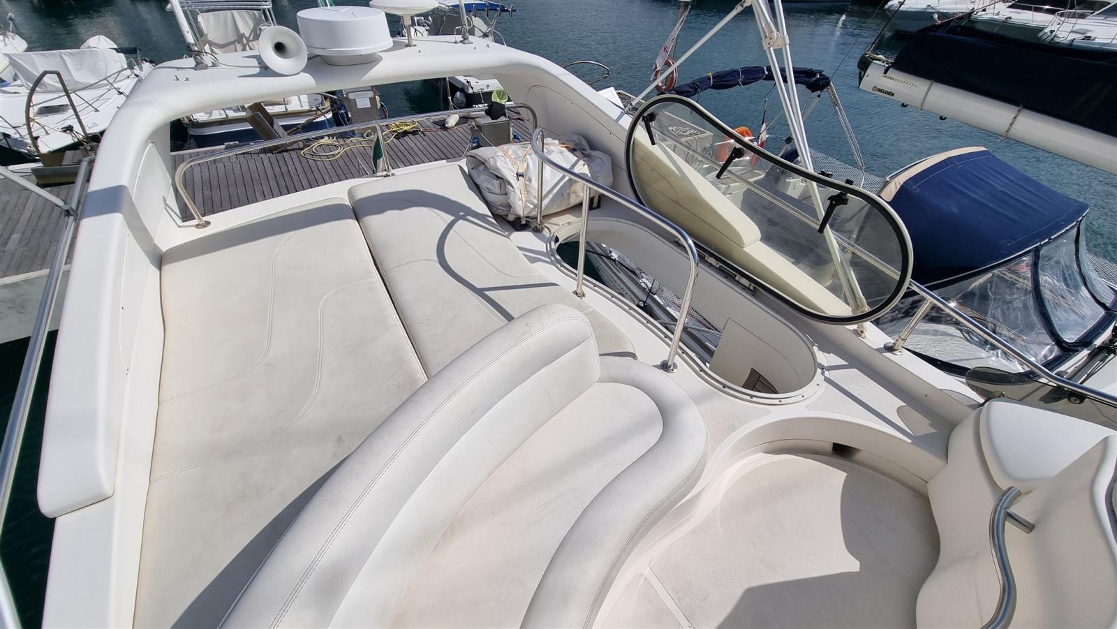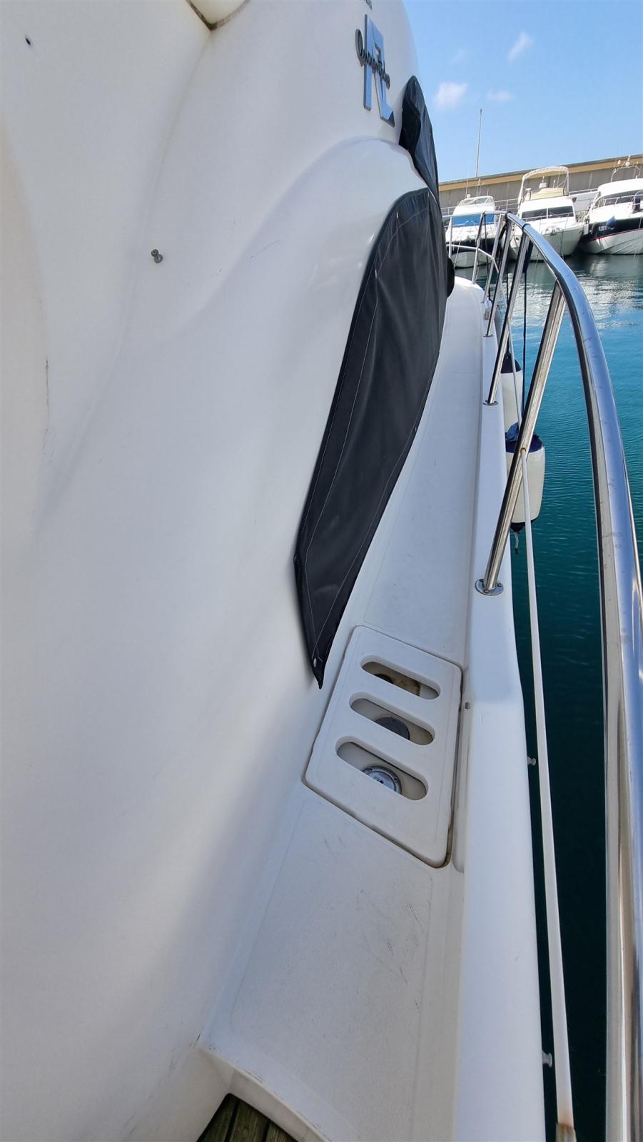 Allarme fumo/gas, Allarme motore, Allarme sentina, Autoclave, Doccia esterna, Doppia timoneria, Flap idraulici, Impianto antincendio, Indicatori Flaps, Luci di cortesia, Passerella, Pompa di sentina automatica, Pompa di sentina manuale, Porta ingresso, Pozzetto Teak, Presa 220V banchina, Raddrizzatore, Rollbar, Salpa Ancore Elettrico, Scaletta da bagno, Tavolo pozzetto, Tromba.