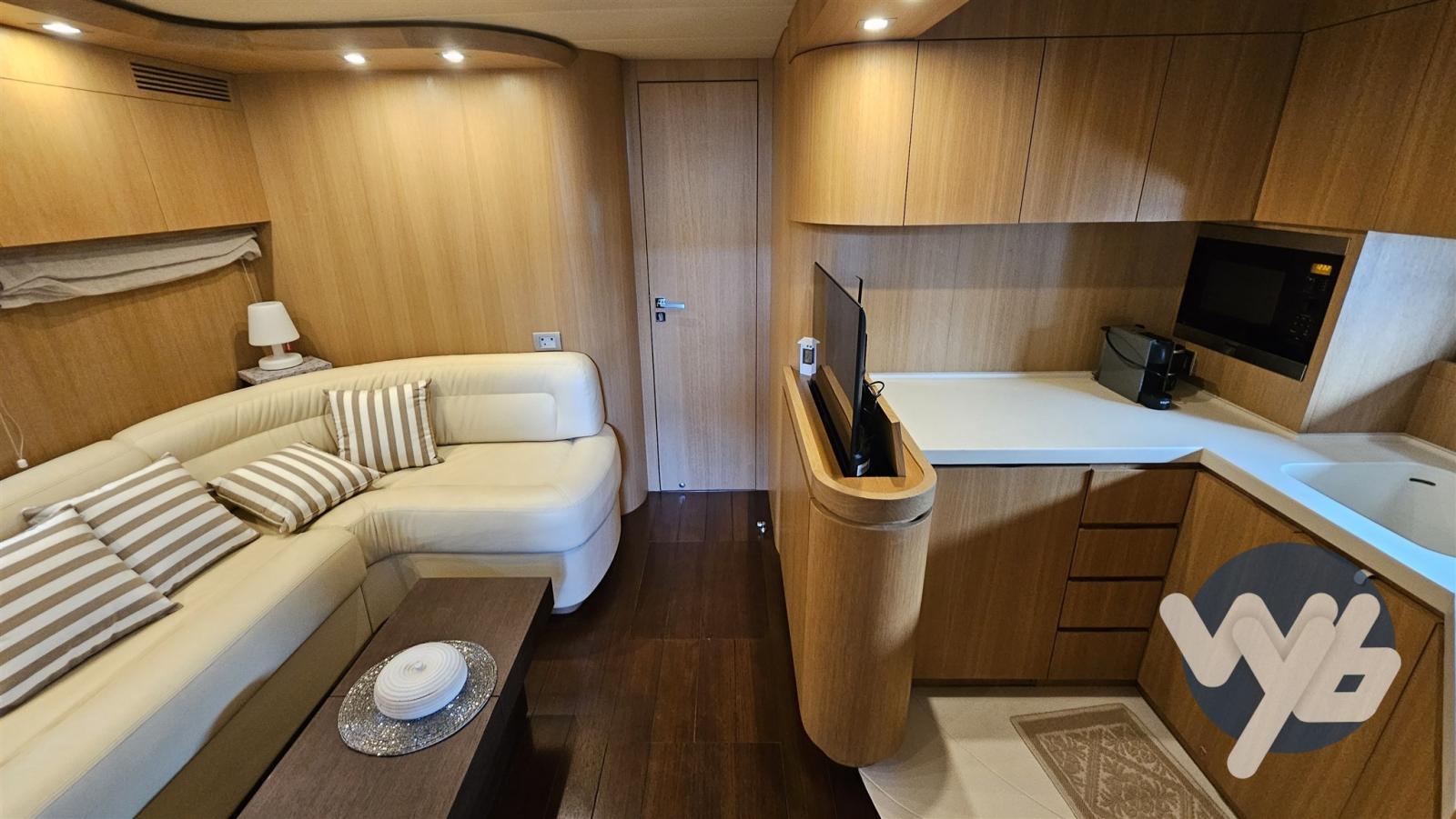 2023/2024: Cuscini pozzetto e tendalini. Teak su camminamenti laterali. Soffitto pozzetto, Pannelli interni in legno chiaro.