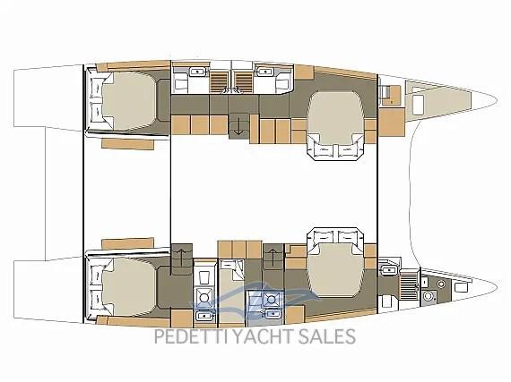 l Dufour 48 Catamarans presenta un perfetto bilanciamento tra il piano di coperta, lo spazio del pozzetto, tetto e il ponte di prua divisi per 1/3 della lunghezza totale.