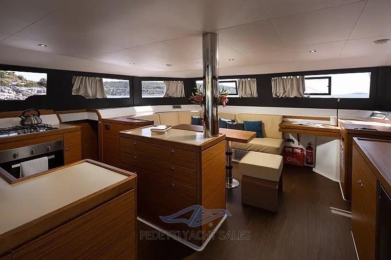 Nella parte anteriore si trovano due eccezionali aree prendisole, separate da un ampio box portaoggetti e dal pozzo dell’ancora.Progettato per l’armatore che vuole vivere a bordo tutto l’anno. Il Dufour Catamarans 48 offre un soggiorno veramente ampio e conviviale. La cucina, collegata al pozzetto, è perfettamente accessoriata ed ergonomica, con i suoi numerosi vani consente uno stoccaggio adeguato alla capienza a bordo.