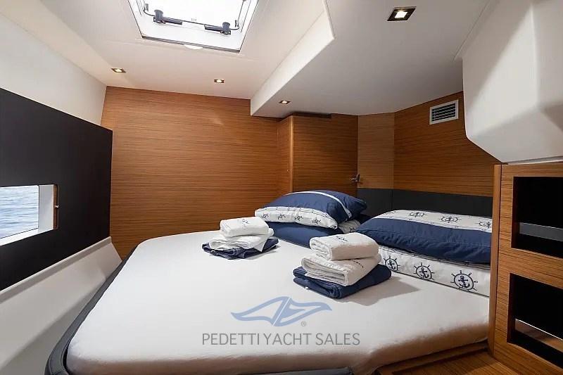 l Dufour 48 presenta 124 m2 di superficie velica di bolina stretta, con 72 m2 di randa e 42 m2 di fiocco, una combinazione che lo rende facile da controllare in ogni situazione, anche con equipaggio ridotto. Inoltre, il boma inclinato, molto apprezzato sui monoscafi Dufour, facilita l’abbassamento e mette in sicurezza l’equipaggio sul fly bridge.