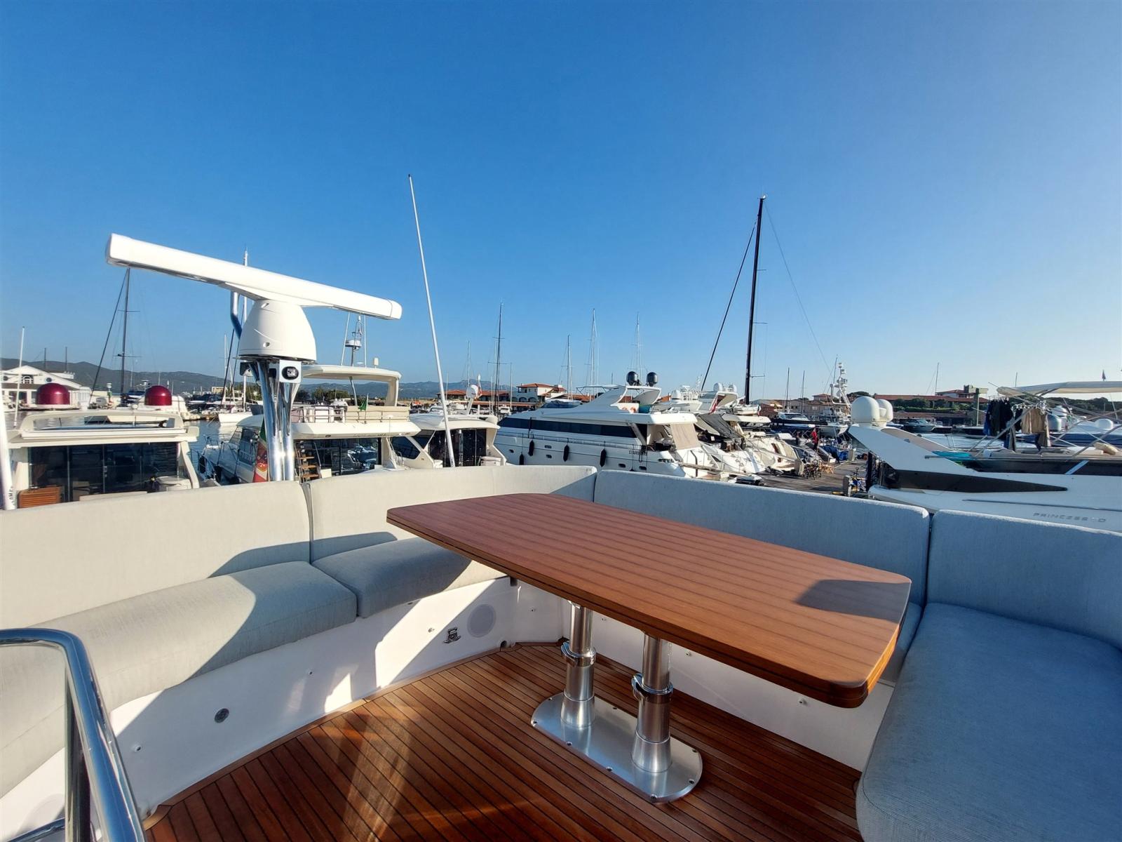 AIS (Garmin/800), Angolo barra, Antenna radar (Garmin), 2 Bussola, 2 Comando motori elettronico (Volvo Penta), 2 Computer di bordo (Volvo Penta), Contametri catena (Garmin), Contamiglia (Garmin), Ecoscandaglio (Garmin), 3 Joystick, Monitor dei consumi, 2 Plotter (Garmin 16"), Plotter con antenna GPS, 2 Quadro comandi, Radio VHF (Garmin / 315), Sedile Copilota (Fly e Lower Station), Sistema di posizionamento dinamico (Volvo).