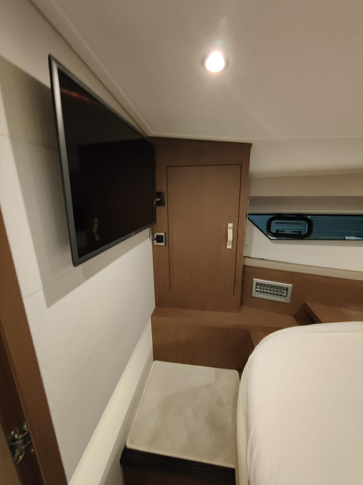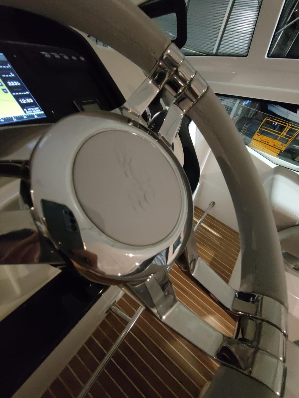 Teak nella plancetta, teak nel pozzetto, tavolo nel pozzetto abbattibile, cucina nella piattaforma, joystick, manette elettroniche, flap elettrici, gps, ecoscandaglio, tromba, vhf, luci nel pozzetto, salpa ancore elettrico, ancora e catena, aria condizionata, tv,