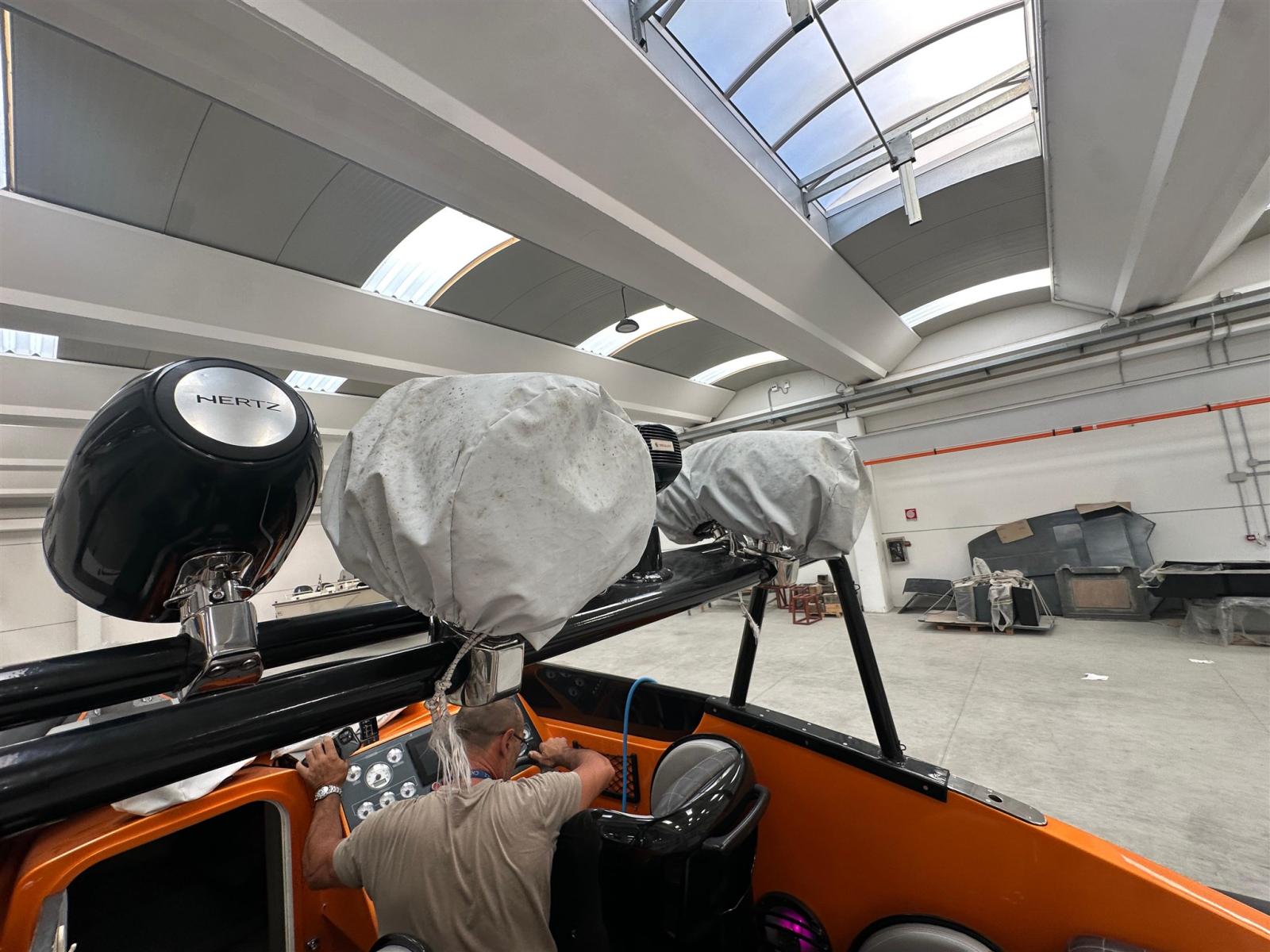 Ha una coppia di eliche che gli fa fare 82 miglia (per crociera) e una da 79 miglia (per gareggiare)