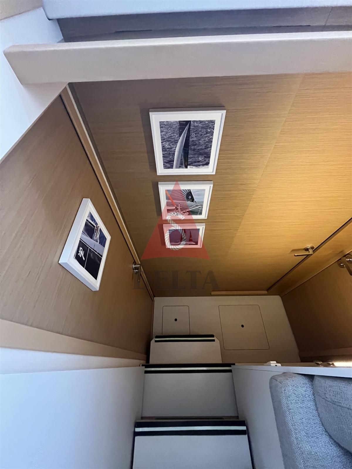 Allarme motore, Allarme sentina, Ancora (Rocna da 25 kg. con chain glower - 50 mt. catena da 12 mm), 2 Aspirazione dal Ponte delle Acque Sporche, Autoclave, 6 Batterie (2 Motori AGM Optima Red - 4 Servizi AGM Optima Yellow), 2 Caricabatterie (Victron BlueSmart), Doccia esterna (calda/fredda), Doppia timoneria (Ruote Timone Carbonautica), Gruette per tender (portata 150 Kg./cad), Luci di cortesia (led in pozzetto e scalini), Monitor batteria, Motore fuoribordo per tender (Yamaha 15CV del 2023 con cover in sunbrella), 4 Pannelli Solari (Uflex 4x120 Watt con interfaccia smart), Passerella (pieghevole Carbonautica), 2 Piattaforma, Pompa di Scarico del Serbatoio Acque Reflue, Pompa di sentina automatica, 2 Pompa di sentina manuale, Pozzetto Teak, Presa 220V banchina, Presa acqua banchina, Salpa Ancore Elettrico (Quick 1000W con telecomando wireless), Sartiame spiroidale, Scaletta da bagno, Tavolo pozzetto, Tender (Tender Highfield CL290 con cover in sunbrella), Tromba, 2 Winch Elettrico (Herken 40 mm), Windex.