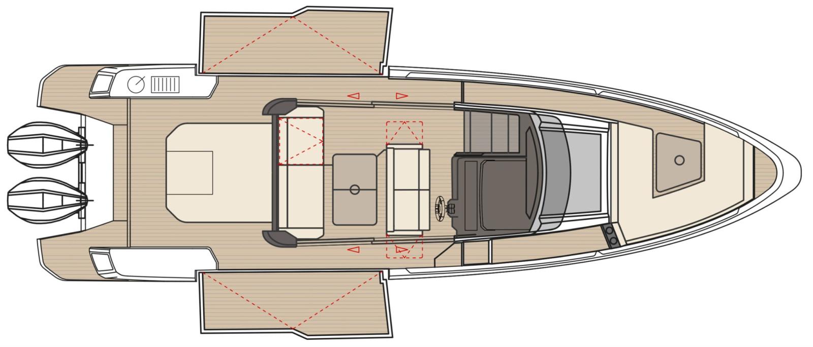 Il Saxdor 340 GTWA stabilisce un nuovo standard in termini di design e funzionalità per la navigazione in ogni condizione atmosferica. Questo modello walkaround fonde perfettamente il piacere di stare all'aperto con un comfort protetto, offrendo uno spazio sicuro e resistente alle intemperie che ti mantiene al riparo in qualsiasi situazione. Essendo l'unico modello wheelhouse walkaround della sua categoria a presentare ampie terrazze laterali, offre passaggi spaziosi e una vasta area aperta che facilitano il movimento e il relax quando aperte. Il divano di prua e il prendisole sul ponte di poppa sono punti deliziosi per rilassarsi e godersi la brezza. La plancia di comando ergonomica presenta un divano frontale per tre persone, garantendo ottima visibilità e comfort. Quando la barca è ferma, il divano può essere ruotato per creare un'accogliente dinette, perfetta per socializzare al coperto. Il ponte inferiore include una spaziosa cabina matrimoniale a prua con WC separato e una cabina di poppa per due, entrambe dotate di ampie finestre che inondano gli interni di luce naturale. Goditi il tuo tempo in acqua senza interruzioni con il Saxdor 340 GTWA Walkaround, indipendentemente dal tempo.