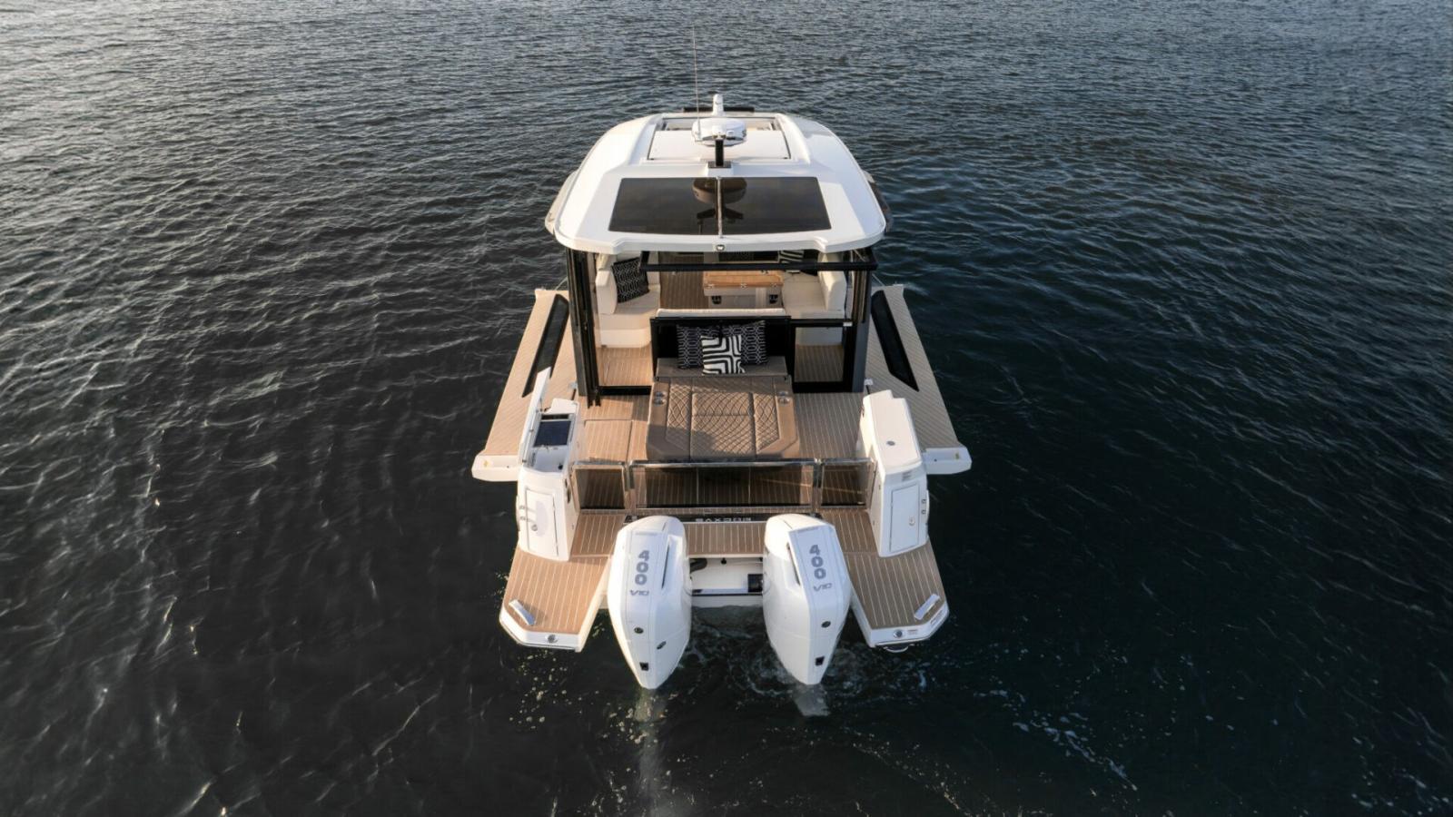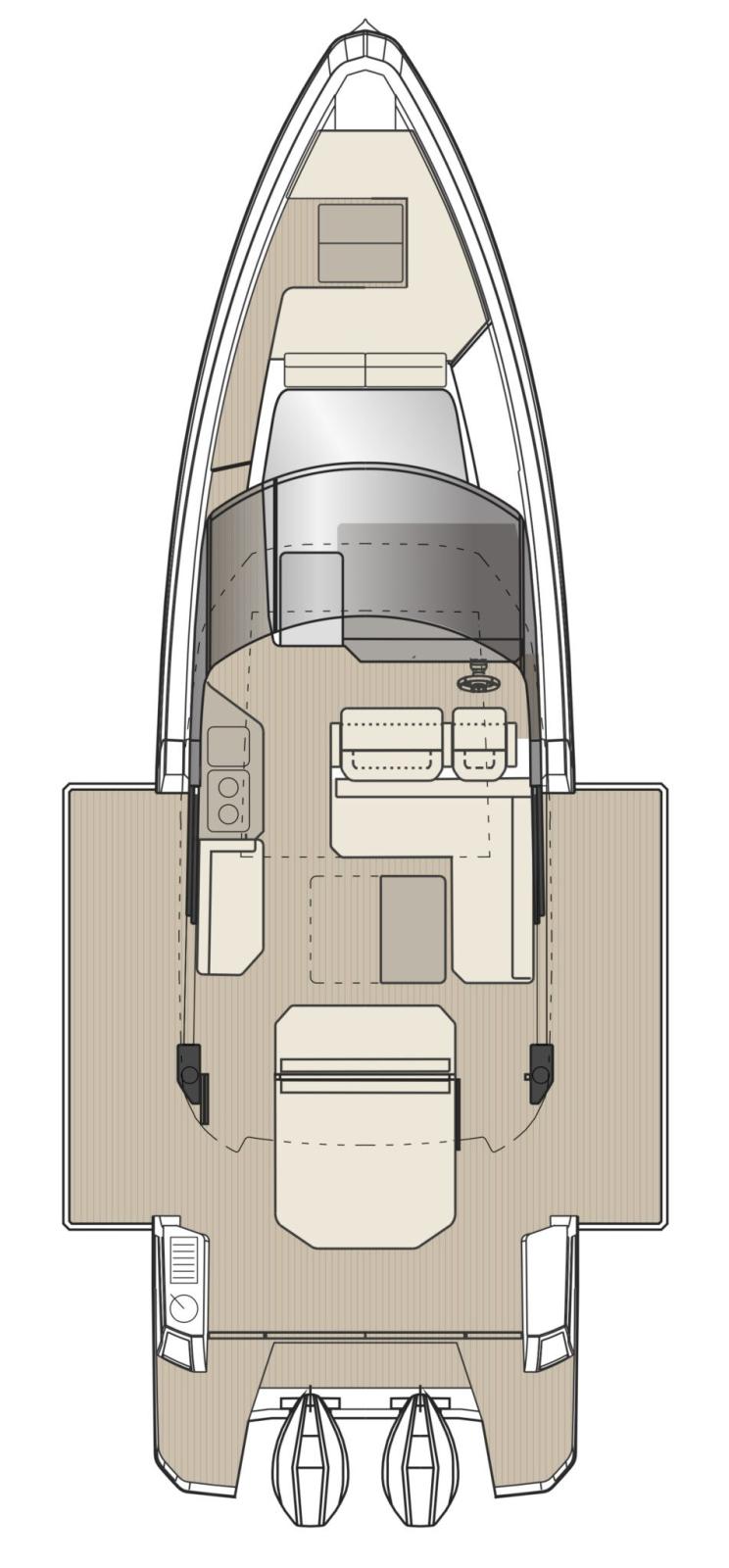 La Saxdor 400 GTC, è progettata per motorizzazioni fuoribordo doppie e sfrutta un’architettura navale esclusiva, garantendo un’esperienza di navigazione memorabile. Il ponte principale presenta un design innovativo con wheelhouse a tutta larghezza, ottimizzando gli spazi interni. Rispetto alla GTO, la GTC aggiunge un tocco di lusso grazie alle ampie superfici vetrate isolate, che creano un ambiente luminoso e accogliente, protetto dagli agenti esterni. Il layout consente un collegamento diretto alle terrazze laterali, per un’esperienza di relax simile a un’isola privata. Sottocoperta, due scale conducono alle cabine doppie – a prua e a centro barca – che condividono un bagno; è disponibile anche un terzo letto opzionale per bambini. Ogni dettaglio è progettato con eleganza e funzionalità. Contattaci per maggiori informazioni.