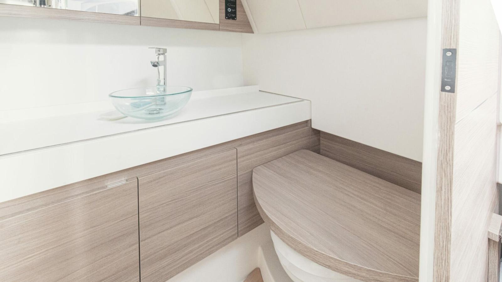 Boiler (40 lt), Impianto acque nere, Prese interne 12v, Prese interne 220v, Serbatoio Acque Nere, WC marino elettrico.