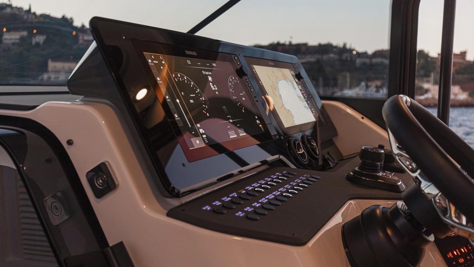 AIS, Computer di bordo, 2 Display (Simrad), DSC vhf, Joystick, Monitor dei consumi, Plotter con antenna GPS, Quadro comandi, Sedile Copilota.