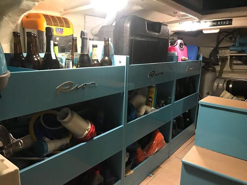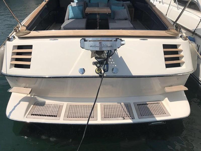 Luci di navigazione; Luci di cortesia pozzetto; Luci immerse specchio di poppa; Elica di prua; Verricello ancora; Passerella idraulica con logo Riva impresso; Plancetta poppa in teak; T-top in carbonio; Tendalino poppiero; Cuscinerie pozzetto; TV Sat; Lavastoviglie; Boiler; Tender con motore FB; Generatore Mase (20h); Batterie; Doccia pozzetto.