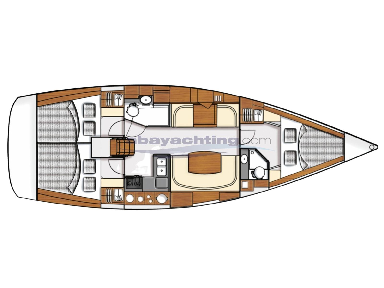 Moody 41 in versione After Cockpit (pozzetto a poppa) e con layout di 3 cabine e 2 bagni.