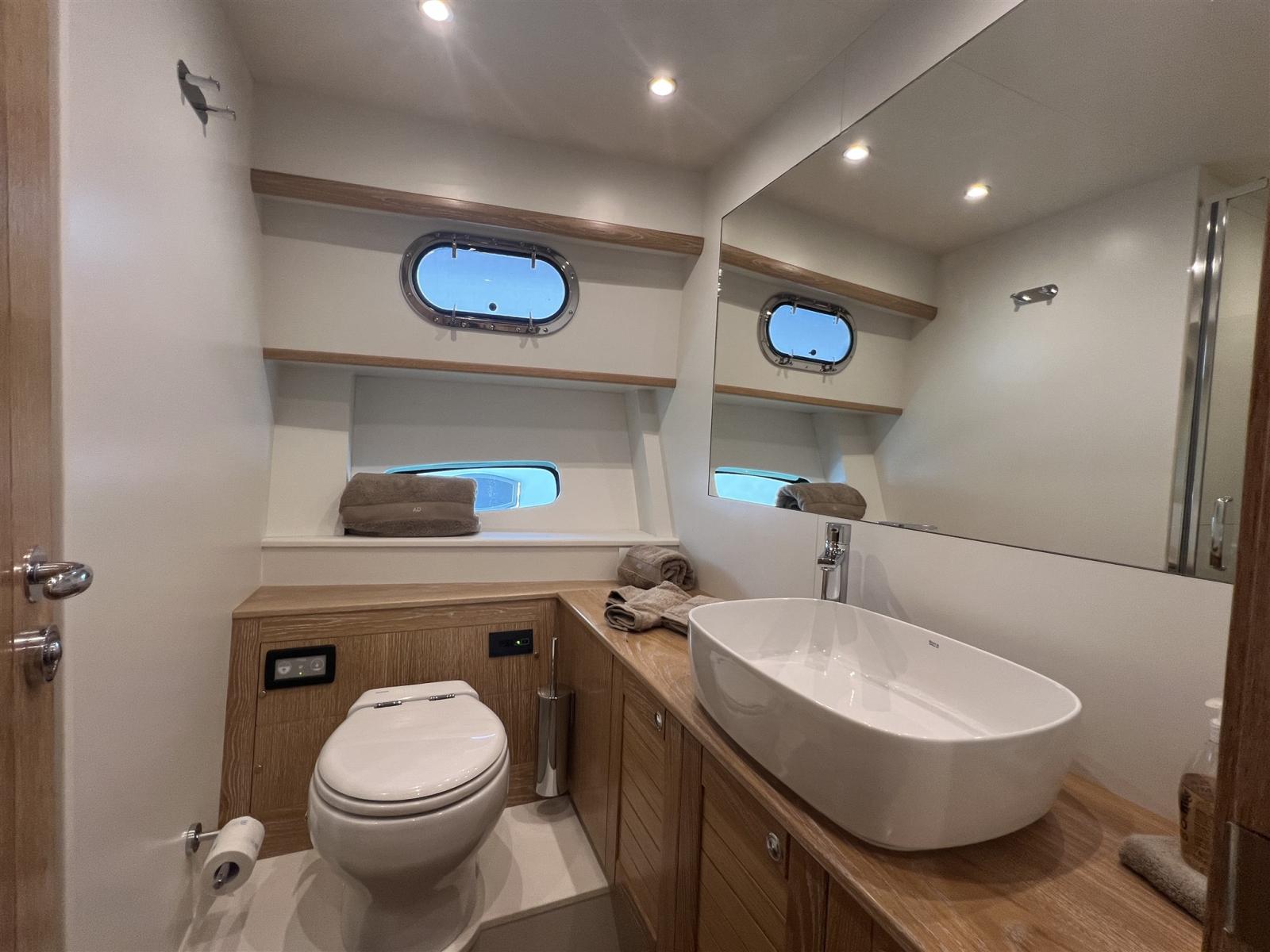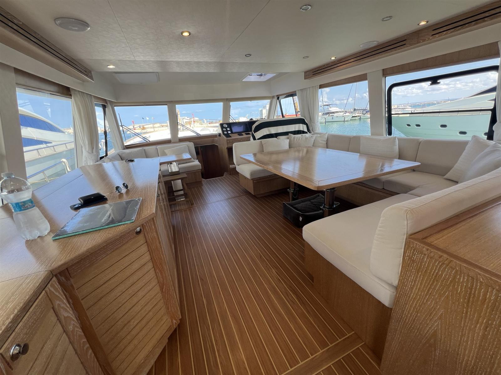 Aria condizionata (WEBASTO 68000 BTU), BBQ/ Grill (PIASTRA INDUZIONE SUL FLY), Boiler, Cassaforte, Clima reversibile, Dissalatore (HP WATERMAKERS 220V 260 L/H), Impianto acque nere, Inverter (VICTRON 3KW), Pavimento interno in legno, Prese interne 12v, Prese interne 220v, Serbatoio Acque Nere, 3 WC marino elettrico (TECNA CON BIDET).