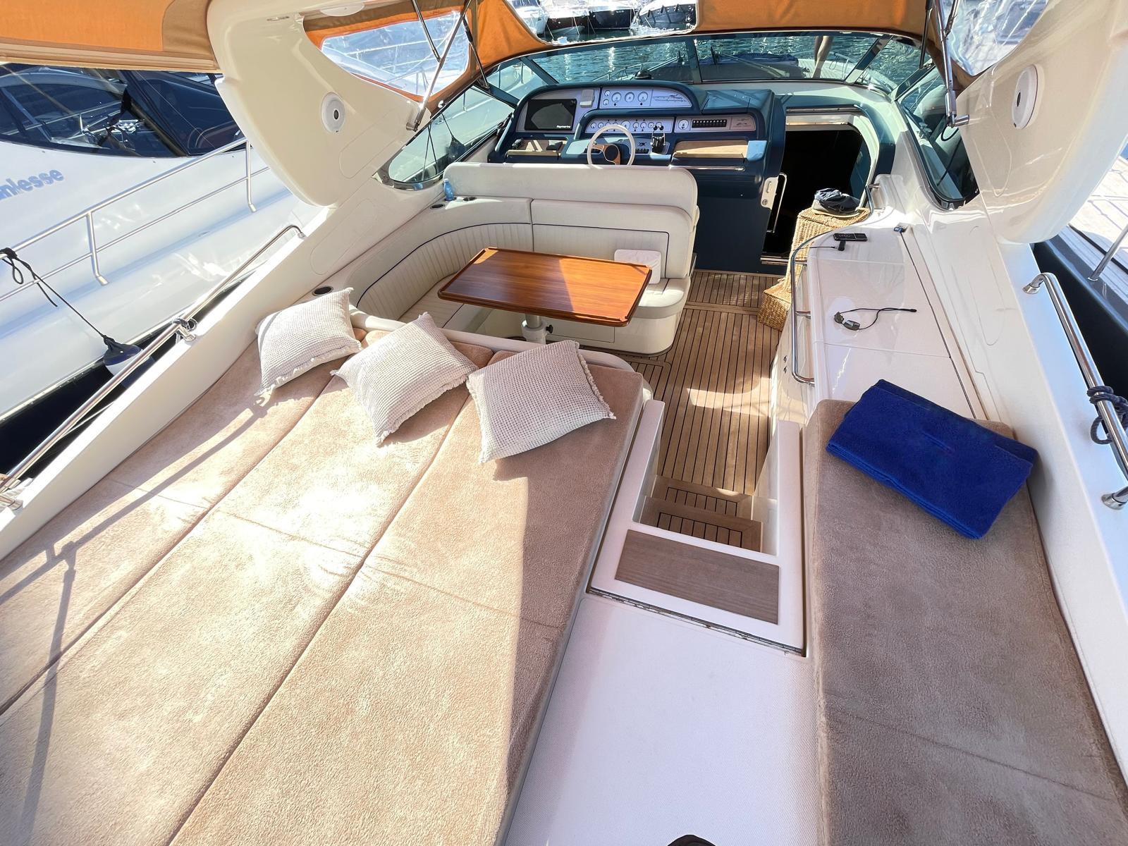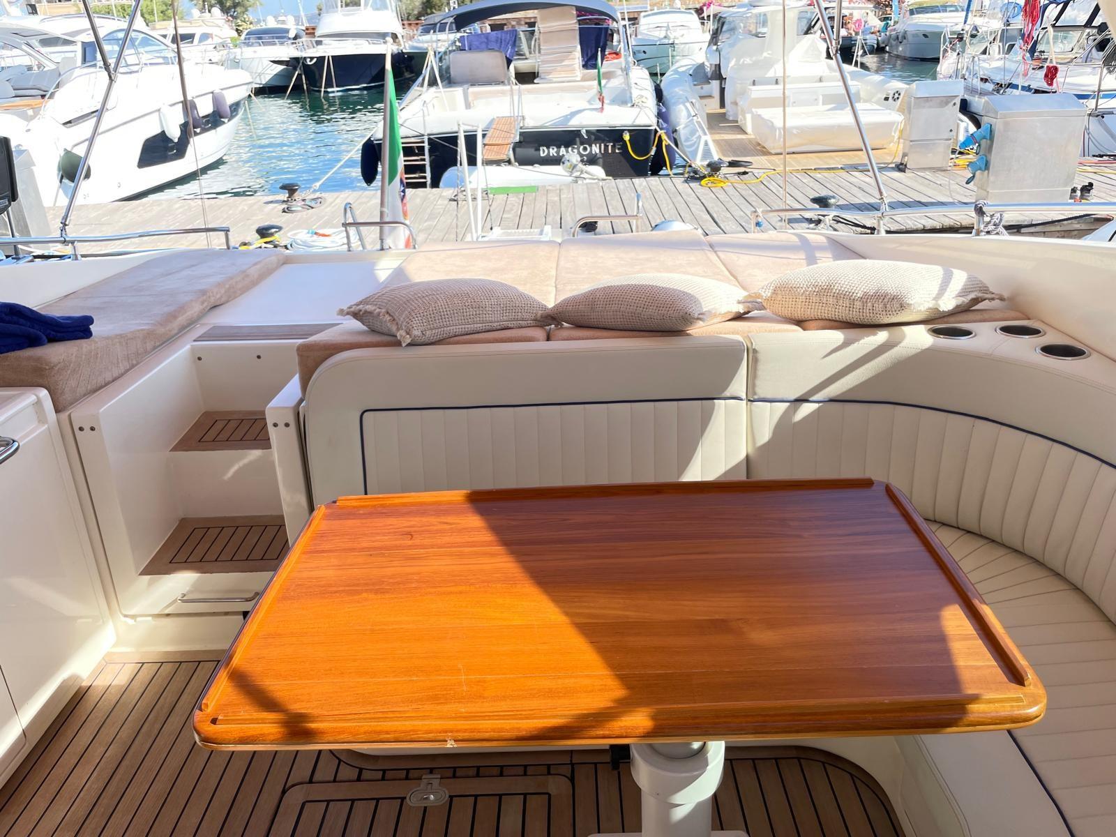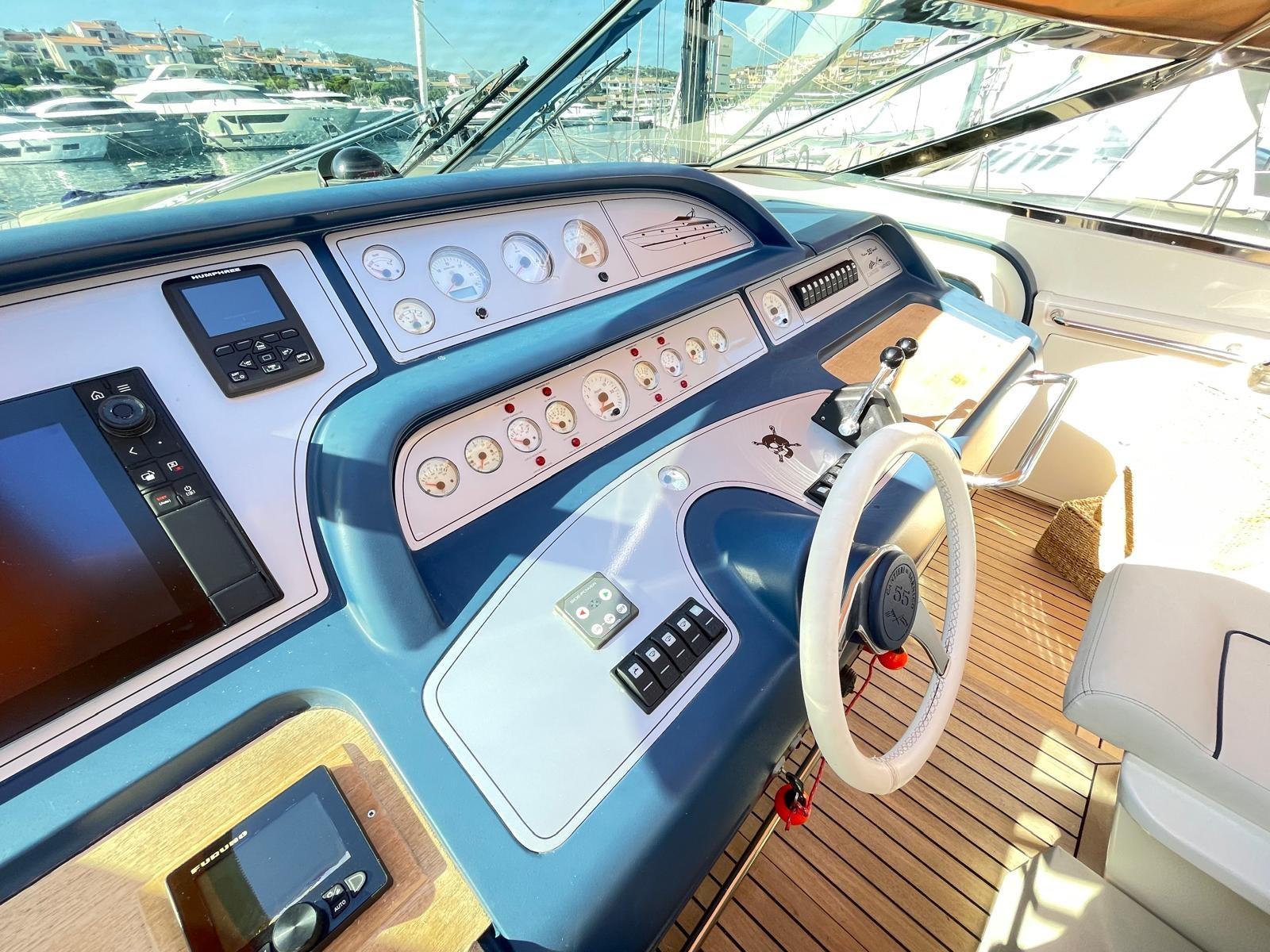 Il Sarnico Maxim 55 è un motoryacht di lusso, lungo circa 17 metri, caratterizzato da un design elegante e spazi esterni generosi come il pozzetto e il prendisole.