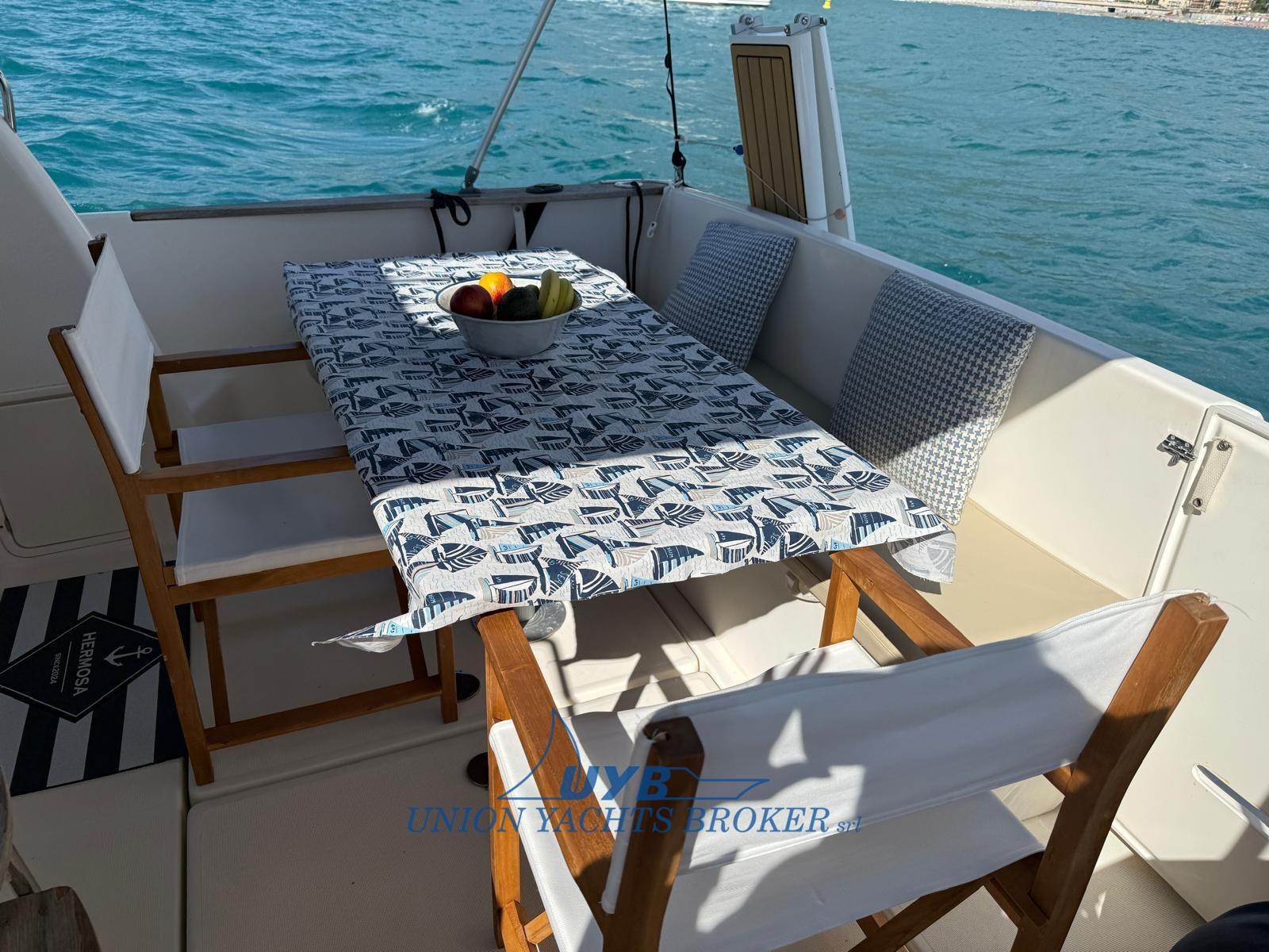 Allarme motore, Allarme sentina, Autoclave, Cavo corrente di banchina, Doccia esterna, Flap elettrici, Passerella, Piattaforma (strutturale), Pompa di sentina manuale, Porta ingresso, Presa 220V banchina, Presa acqua banchina, Raddrizzatore, Salpa Ancore Elettrico, Scaletta da bagno, Tavolo pozzetto, Tavolo Salone Abbattibile.
