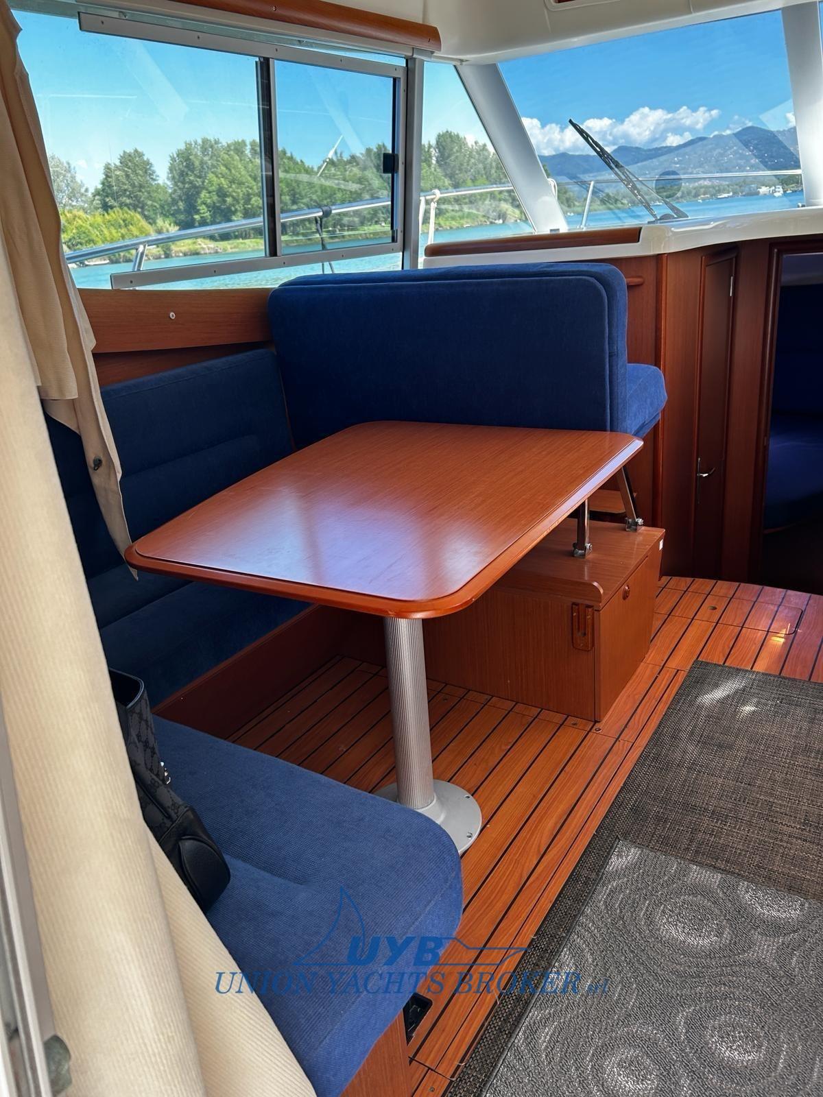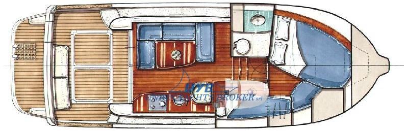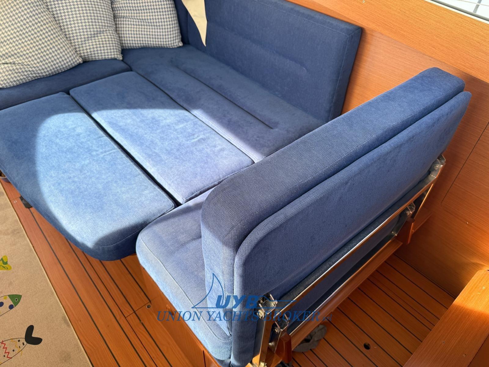 Cabina doppia a prua, toilette e cuccetta aggiuntiva. Dinette trasformabile in letto.