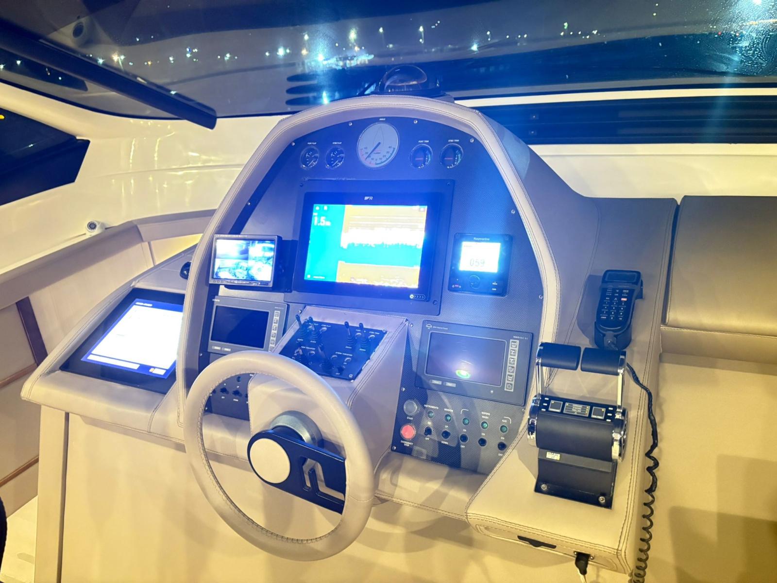 AIS, Angolo barra, Antenna radar, Comando motori elettronico, Computer di bordo, Contametri catena, Display, DSC vhf, Monitor dei consumi, Plotter con antenna GPS, Quadro comandi, Sedile Copilota.