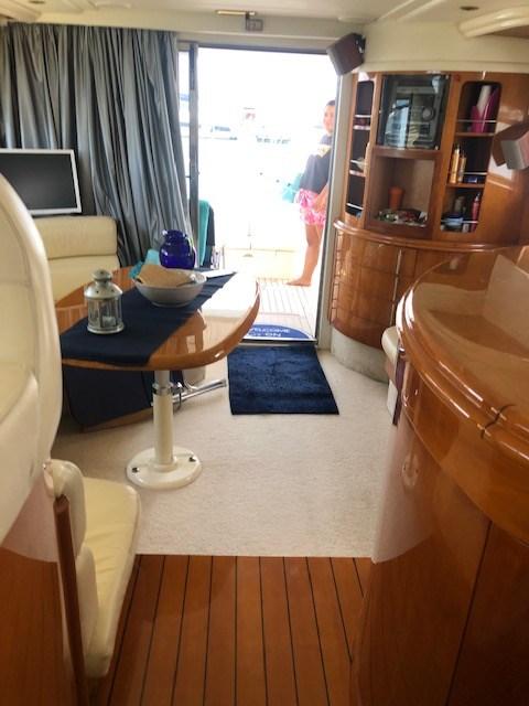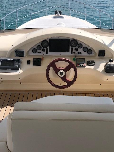 Allarme motore, Allarme sentina, Autoclave, Camminamenti laterali in teak, Doccia esterna, Doppia timoneria, Faro orientabile, Flap elettrici, Luci di cortesia, Pompa di sentina automatica, Porta ingresso, Pozzetto Teak, Presa 220V banchina, Rollbar, Salpa Ancore Elettrico, Scaletta da bagno, Tromba, Tuga in teak.