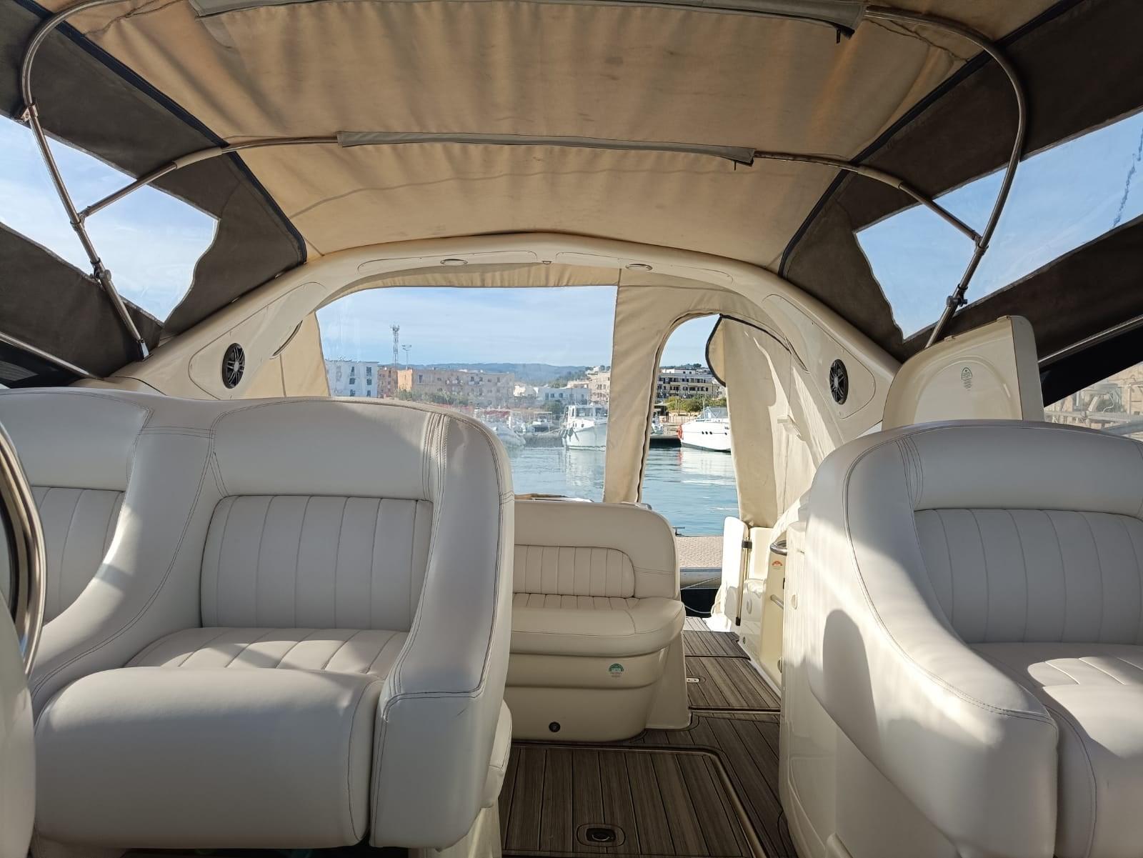 Allarme motore, Allarme sentina, Autoclave, Doccia esterna, Flap elettrici, Flap idraulici, Garage per tender, Piattaforma, Pompa di sentina automatica, Pozzetto Teak, Presa 220V banchina, Rollbar, Salpa Ancore Elettrico, Scaletta da bagno, Tavolo pozzetto, Tavolo Salone Abbattibile, Tromba.