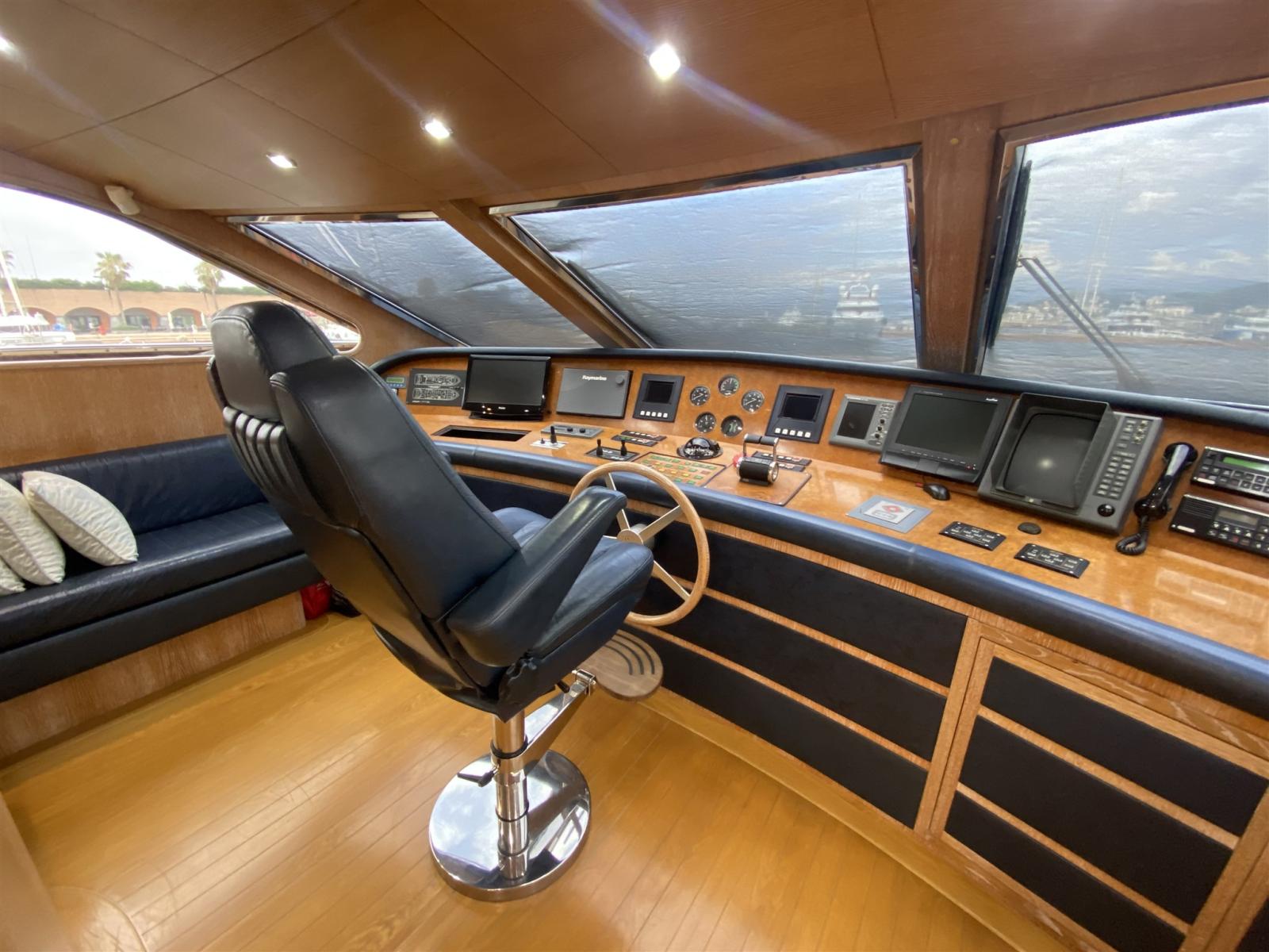 AIS (2017), Angolo barra, Antenna radar, Comando motori elettronico, Display, Ecoscandaglio (FURUNO), Joystick (TIMONE), Plotter con antenna GPS, Radar (FURUNO), 2 Radio VHF, SSB.