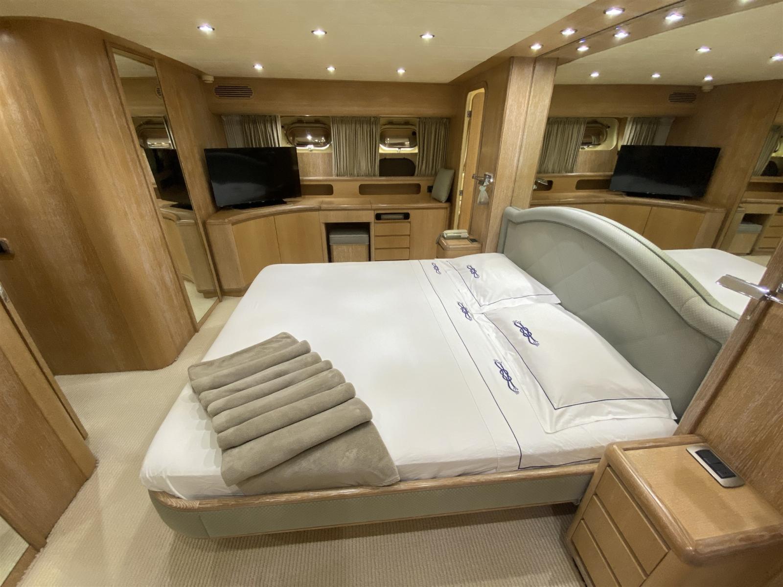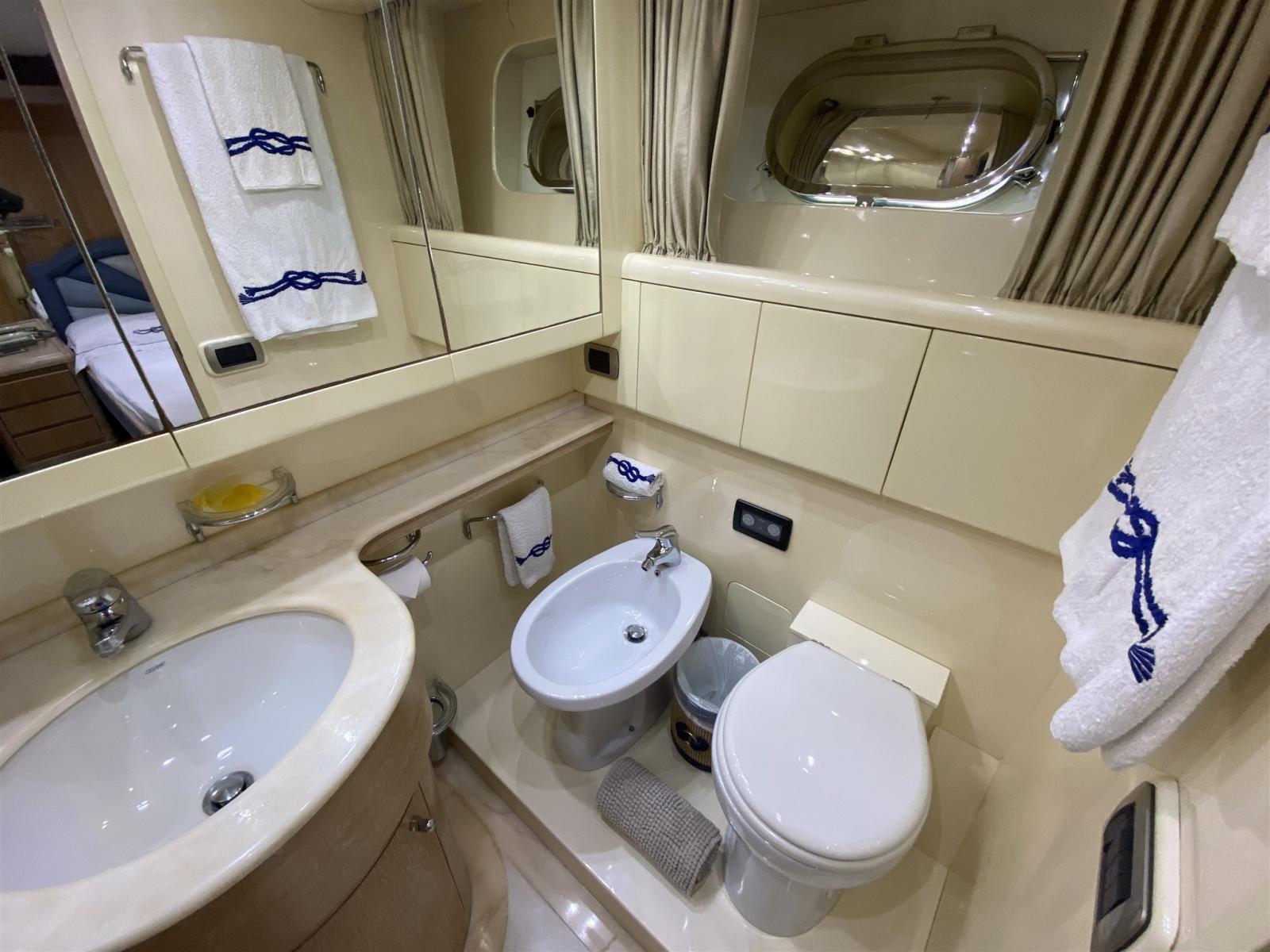 Aria condizionata (IN OGNI AMBIENTE CON TERMOSTATI REGOLABILI INDIPENDENTEMENTE), Boiler (ELETTRICO 220V), Dissalatore, Inverter (MASTERVOLT 1500W), Prese interne 12v, Prese interne 220v, Telecamera, WC marino elettrico.