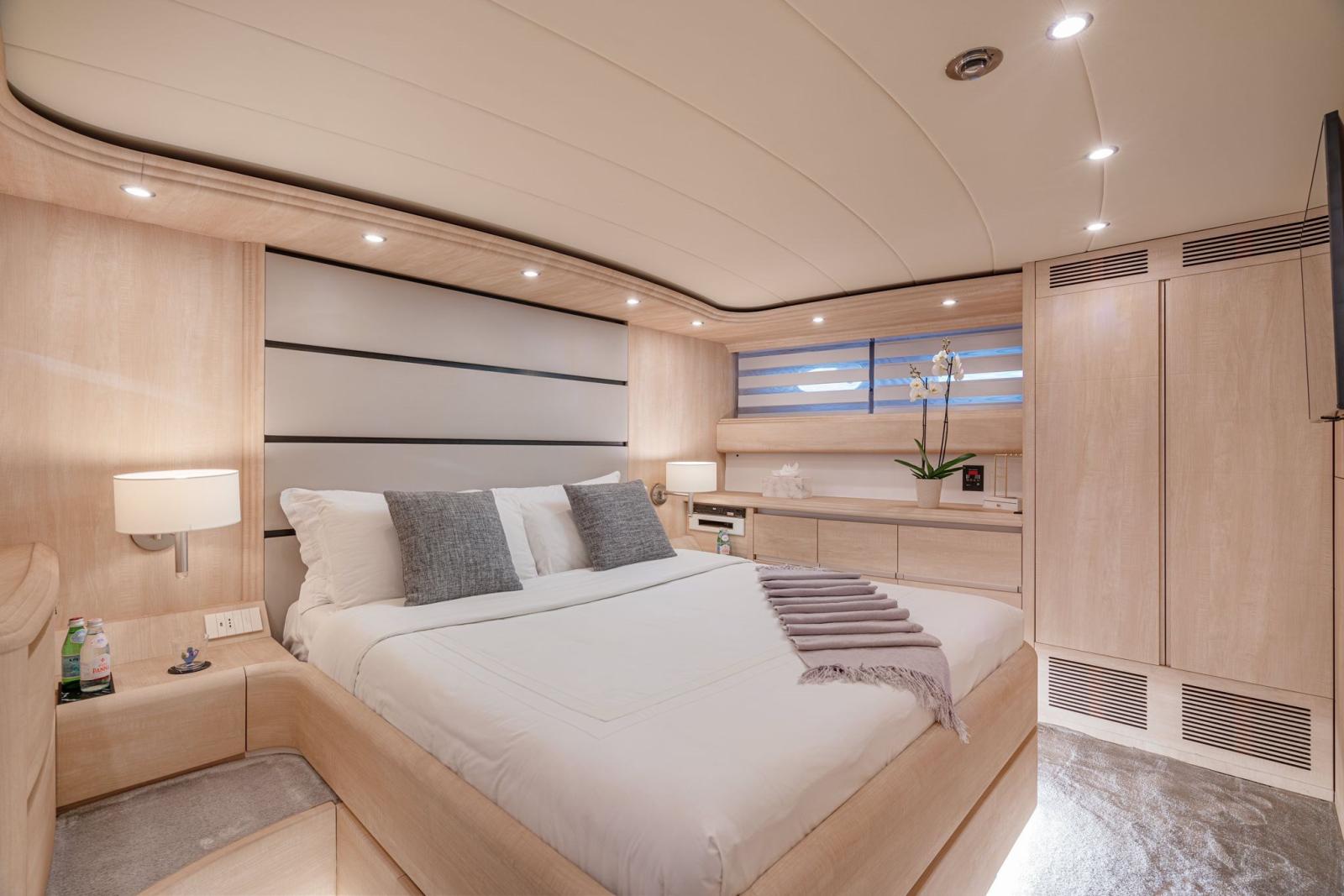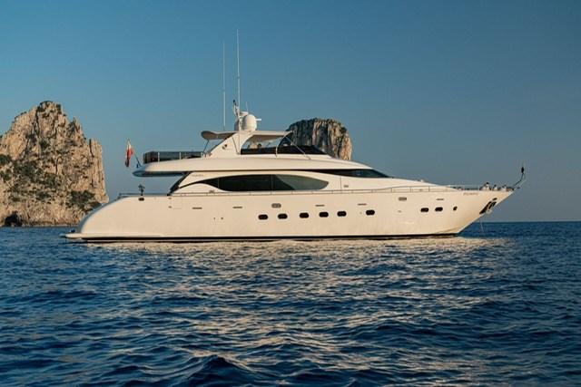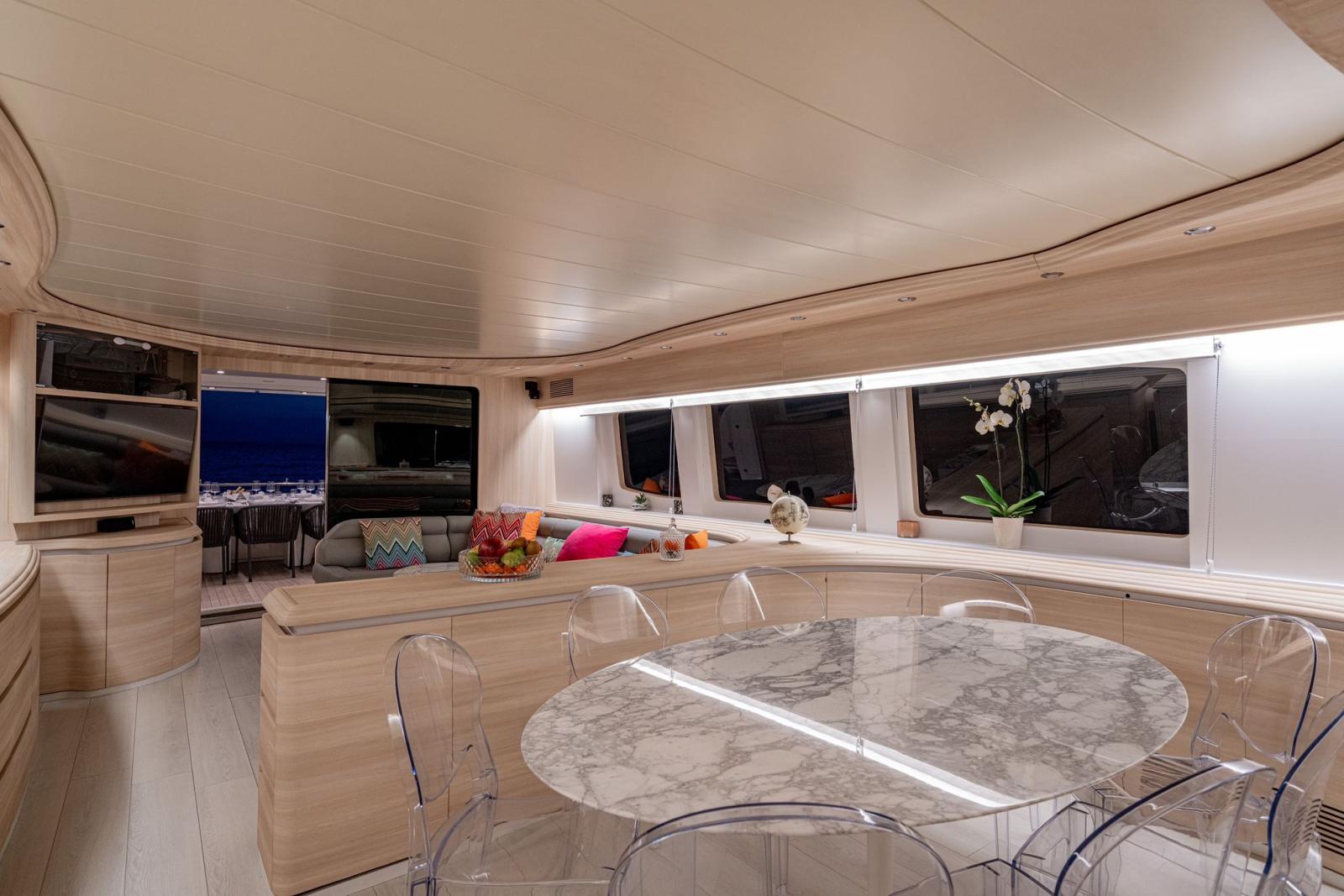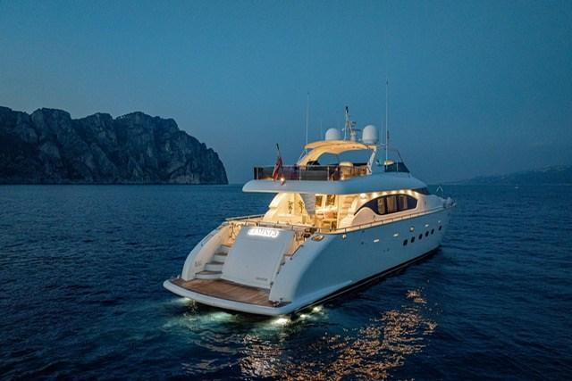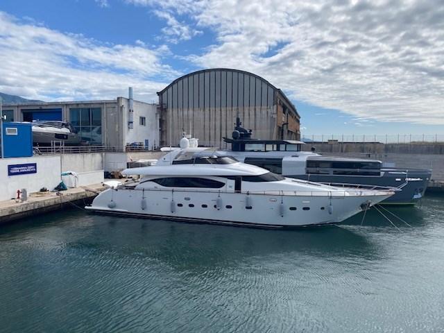 Allarme fumo/gas, Allarme motore, Allarme sentina, Alternatore, Autoclave, Camminamenti laterali in teak, Colorazione speciale, Doccia esterna, Flap idraulici, Garage per tender, Gruette per tender, Impianto antincendio, Lavaggio catena, Luci di cortesia, Luci subacquee, Passerella (IRAULICA), Pompa di sentina automatica, Pompa di sentina manuale, Ponte in teak, Porta ingresso, Porta laterale, Pozzetto Teak, Presa 220V banchina, Presa acqua banchina, Raddrizzatore, Rollbar, 2 Salpa Ancore Idraulico, Scaletta da bagno, Stabilizzatori, Tavolo pozzetto, Tender, Tientibene con cancelletti, Winch Idraulico, Winch tonneggio di poppa, Winch tonneggio di prua.