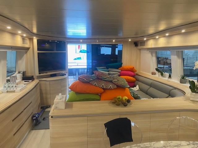 BBQ/ Grill, Boiler, Cassaforte, Clima reversibile, Collegamento internet, Dissalatore, Impianto acque nere, Pavimento interno in legno, Prese interne 12v, Prese interne 220v, Serbatoio Acque Nere, Telecamera, WC marino elettrico.