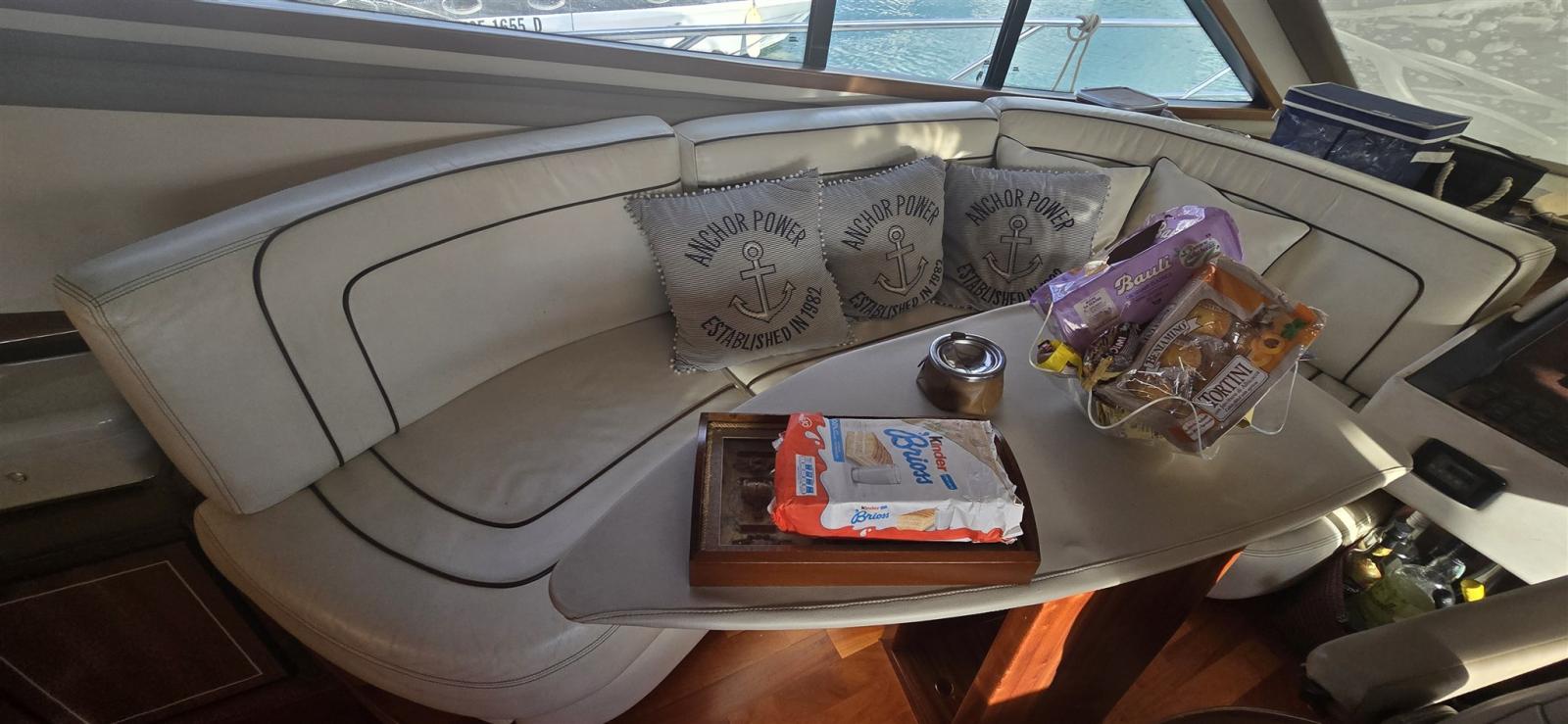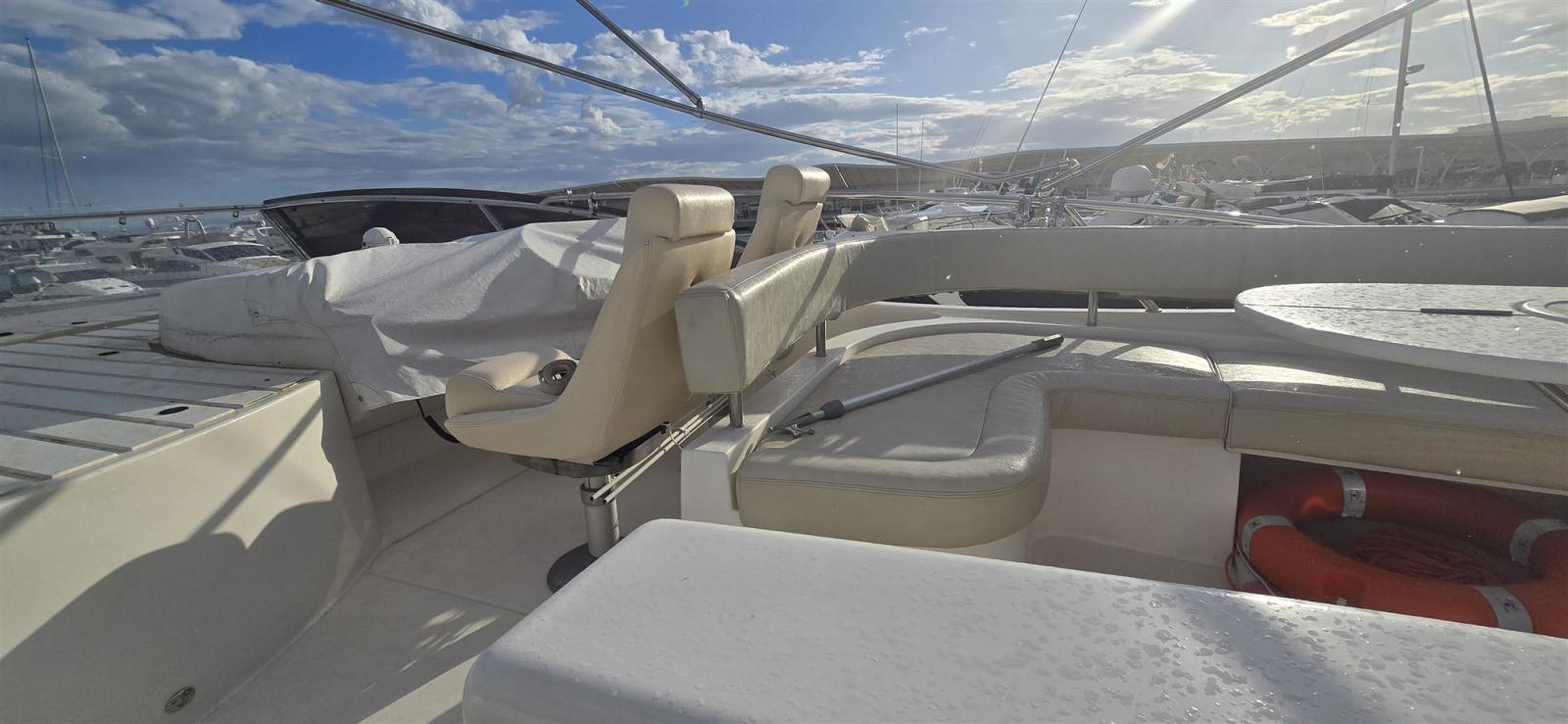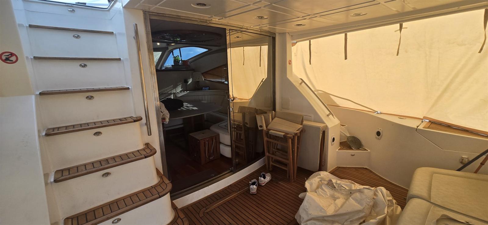 Allarme fumo/gas, Allarme motore, Allarme sentina, Autoclave, Doccia esterna, Faro orientabile, Flap elettrici, Impianto antincendio, Indicatori Flaps, Lavandino nel Pozzetto, Luci di cortesia, Luci subacquee, Pompa di sentina automatica, Pompa di sentina manuale, Pozzetto Teak, Presa 220V banchina, Presa acqua banchina, Salpa Ancore Elettrico, Scaletta da bagno, Selle per Tender, Tavolo pozzetto, Tender, Tromba, 2 Winch tonneggio di poppa.