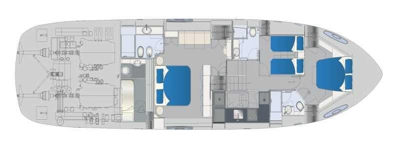 Allarme motore, Allarme sentina, Alternatore, Autoclave, Bitte Abbattibili, Camminamenti laterali in teak, Doccia esterna, Faro orientabile, Flap idraulici, Garage per tender, Hard top, Impianto antincendio, Indicatori Flaps, Lavaggio catena, Lavandino nel Pozzetto, Luci di cortesia, Luci subacquee, Passerella, Piattaforma, Pompa di sentina automatica, Pompa di sentina manuale, Ponte in teak, Porta ingresso, Pozzetto Teak, Presa 220V banchina, Salpa Ancore Elettrico, Scaletta da bagno, Stabilizzatori, Tavolo pozzetto, Tromba, 2 Winch tonneggio di poppa.