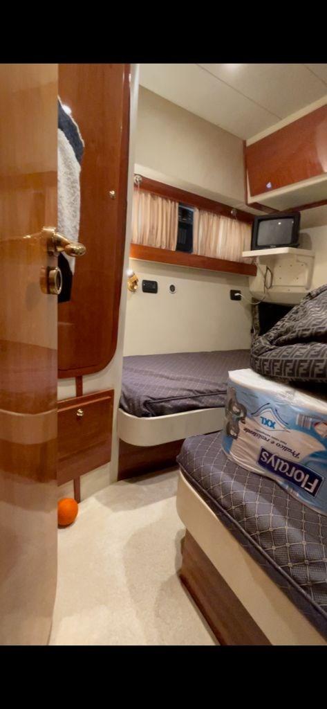 Allarme motore, Allarme sentina, Autoclave, 5 Batterie, Doccia esterna, Doppia timoneria, Flap idraulici, Impianto antincendio, Luci di cortesia, Passerella, Piattaforma, Pompa di sentina automatica, Pompa di sentina manuale, Porta ingresso, Pozzetto Teak, Presa 220V banchina, Rollbar, Salpa Ancore Elettrico, Scaletta da bagno, Tromba.