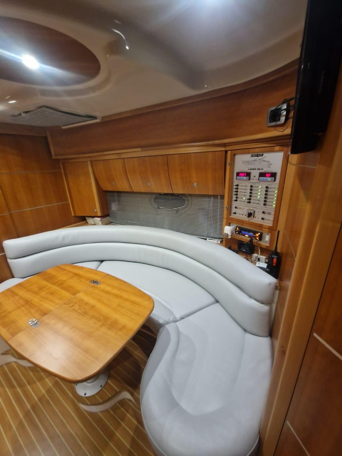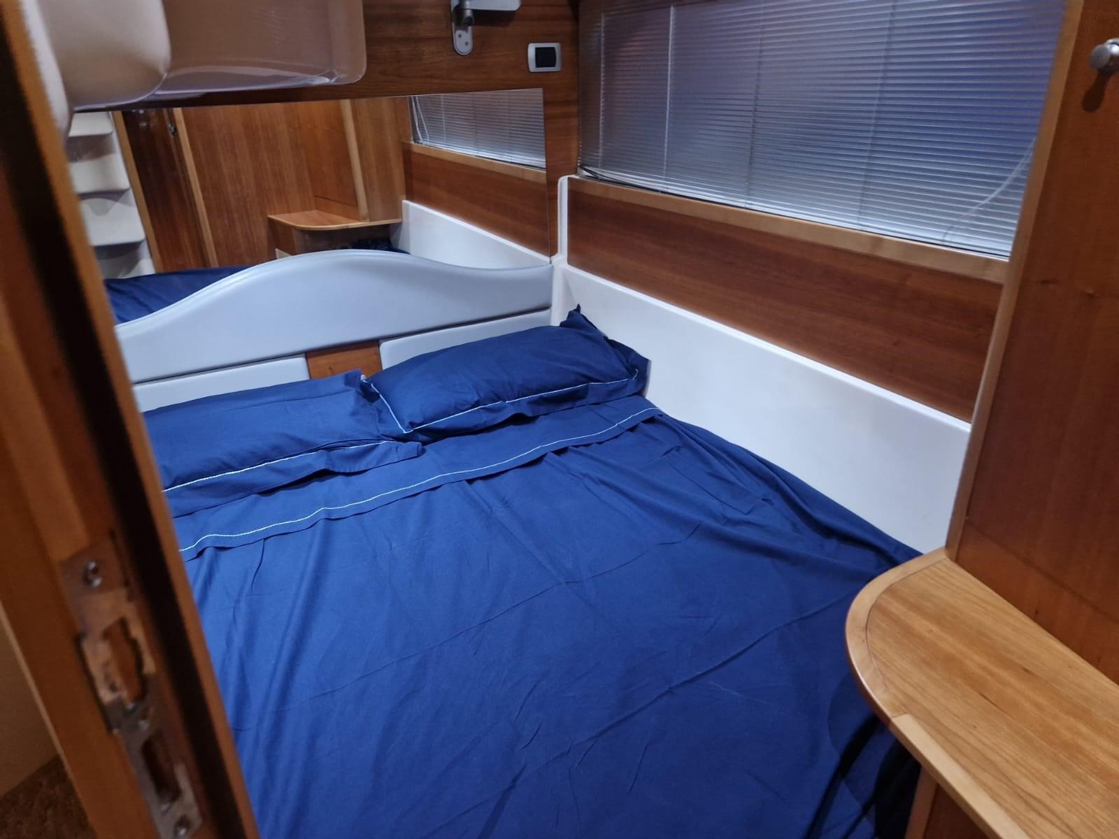 Boiler, Clima reversibile, Impianto acque nere, Pavimento interno in legno, Prese interne 12v, Prese interne 220v, Serbatoio Acque Nere, WC marino elettrico.